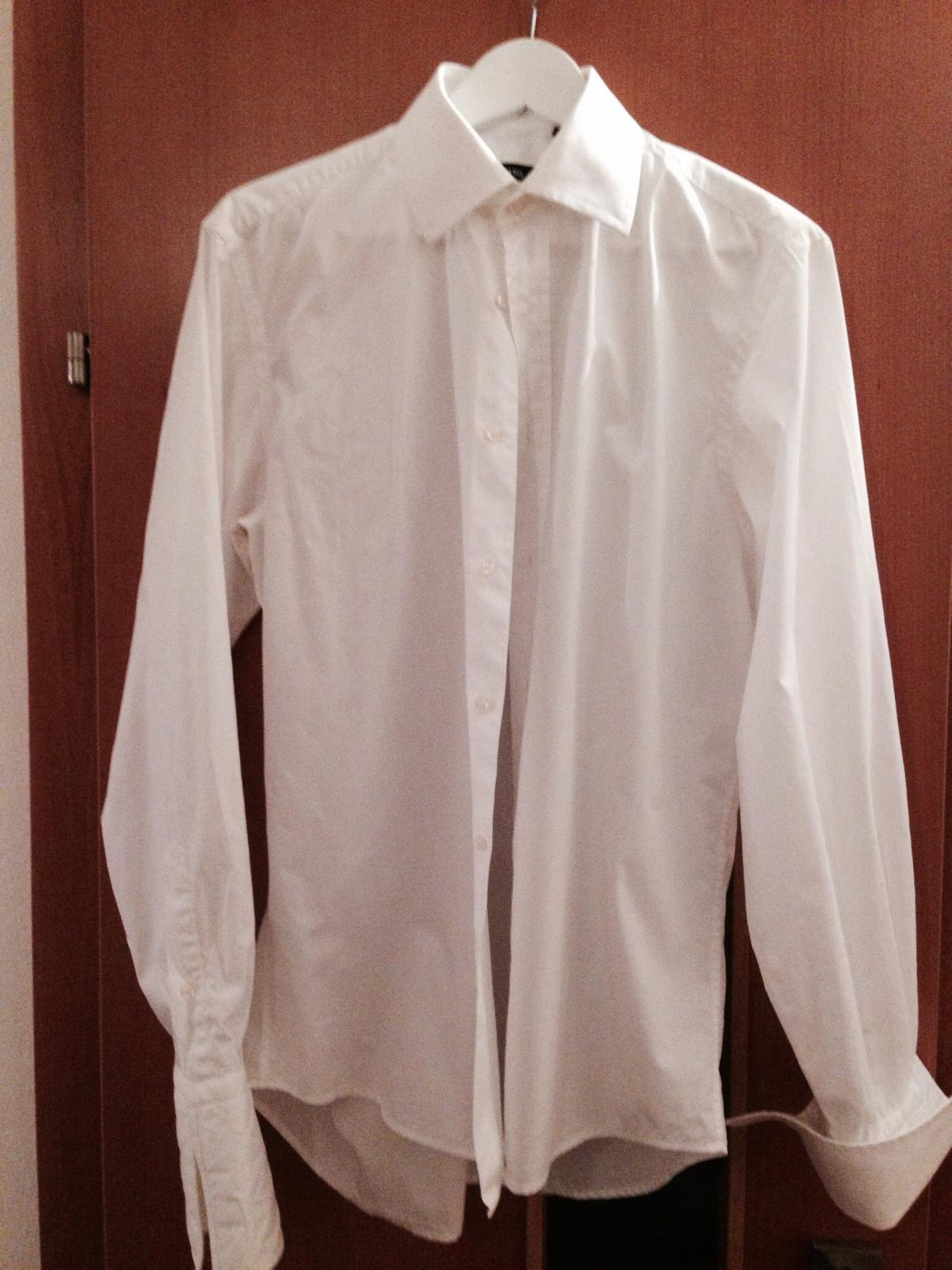 manzetova, velmi malo nosena, výborný stav, je mierne kremova (ked je vedla bieleho tak je vidno rozdiel, velkost 39 (15 a pol), vrátane gombikov