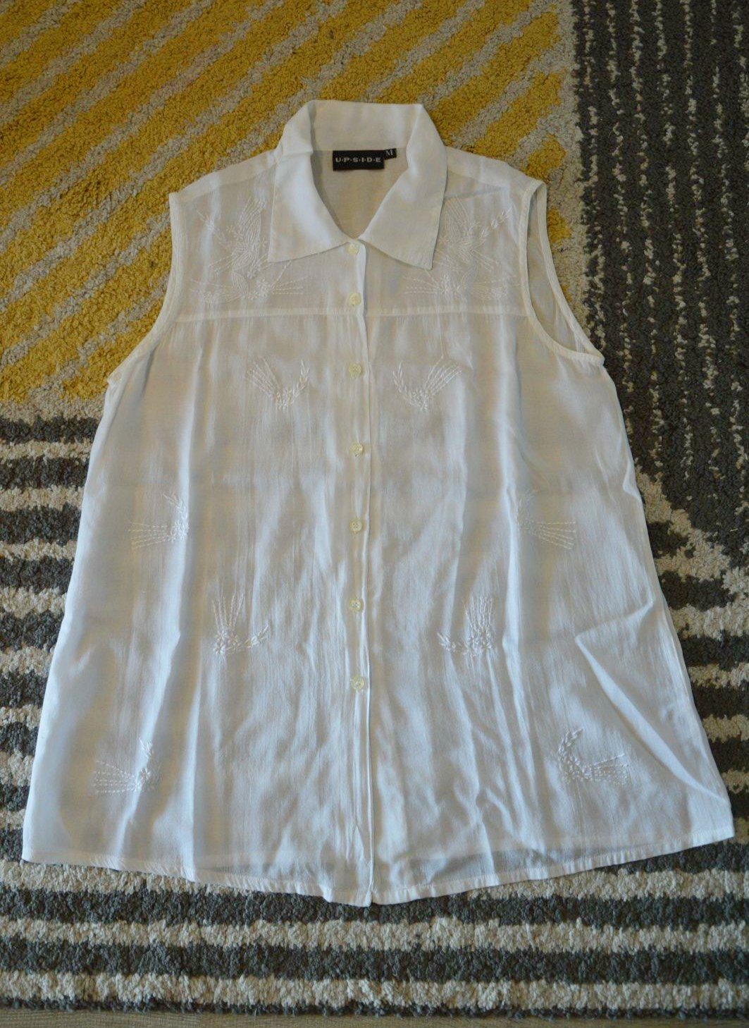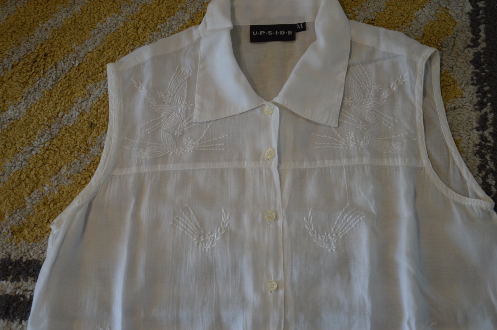 velmi pekný stav, bez poskodeni, pekná sýta farba, vyšité kvetinky, trochu presvita, málo nosené,