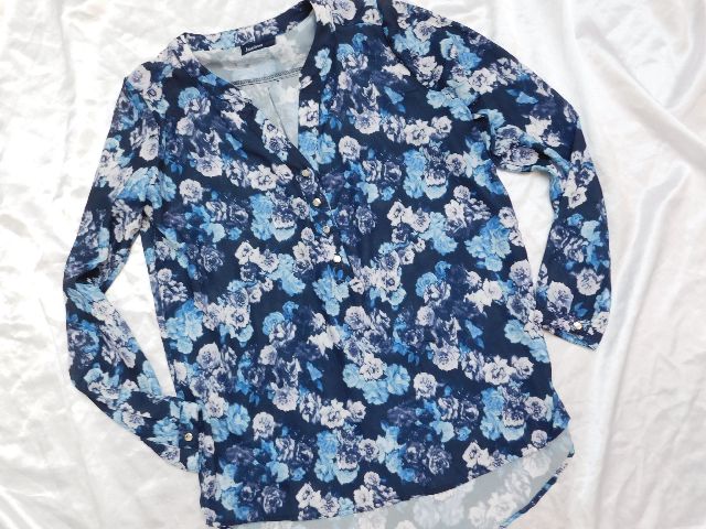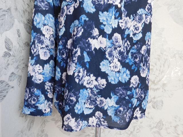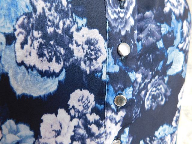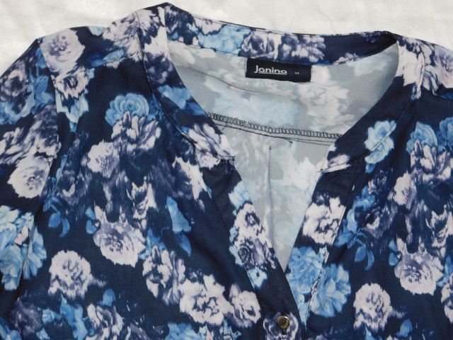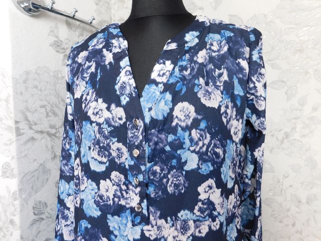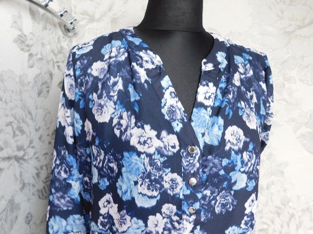 Velmi pekna bluzka,tmavo modrej farby s potlačou,kratka gombikova lega.100%polyester.super stav,ako nova . se15