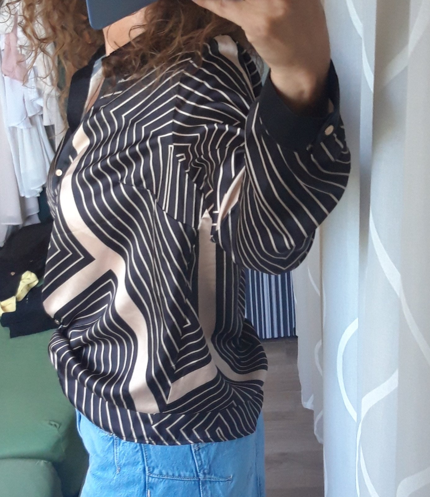 Kosela v super stave,raz oblecena,vzadu vystrih a kovovy doplnok,rukav sa da zrolovat na 3/4