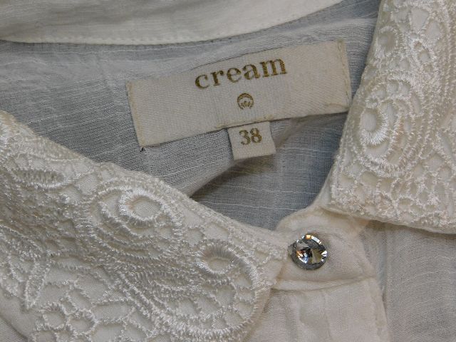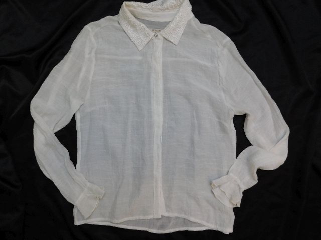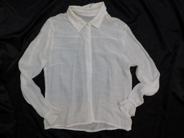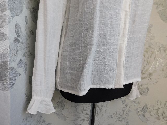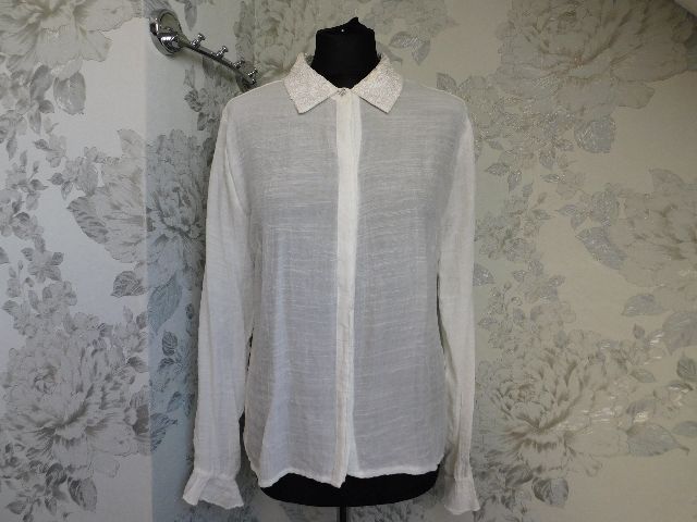 Kvalitna vzdušna lahučka košelova bluzka,bielej farby,golier zdobeny čipkou,prekryta gombikova lega.super stav. j51