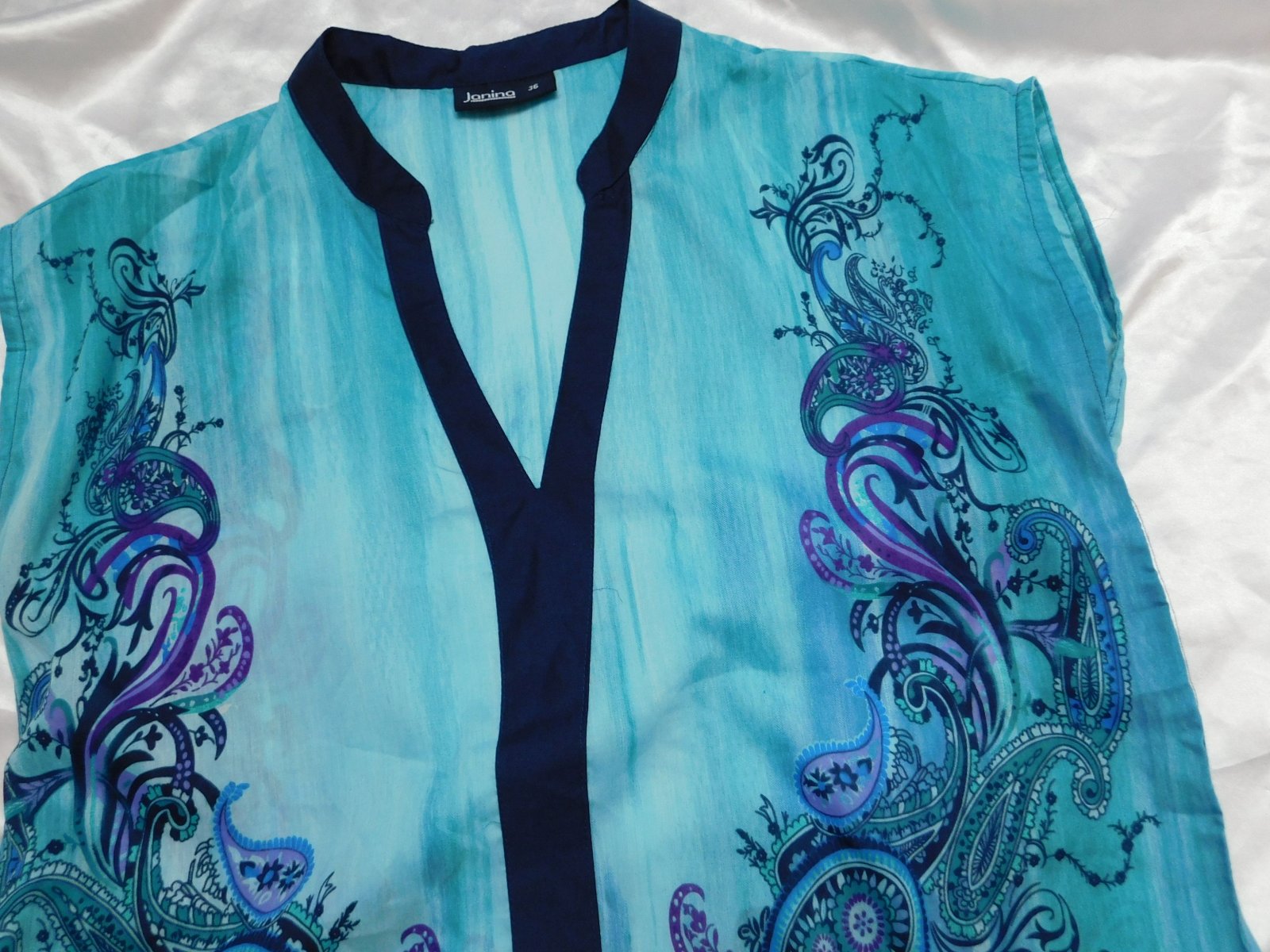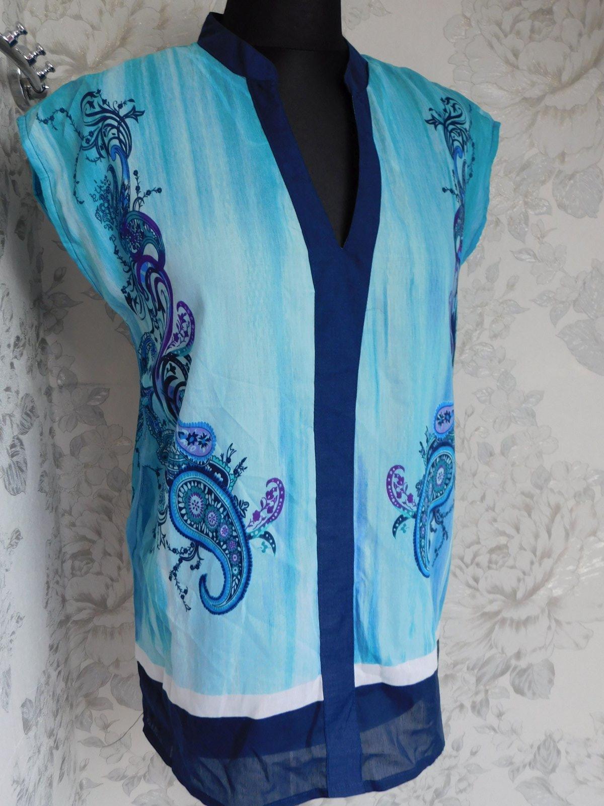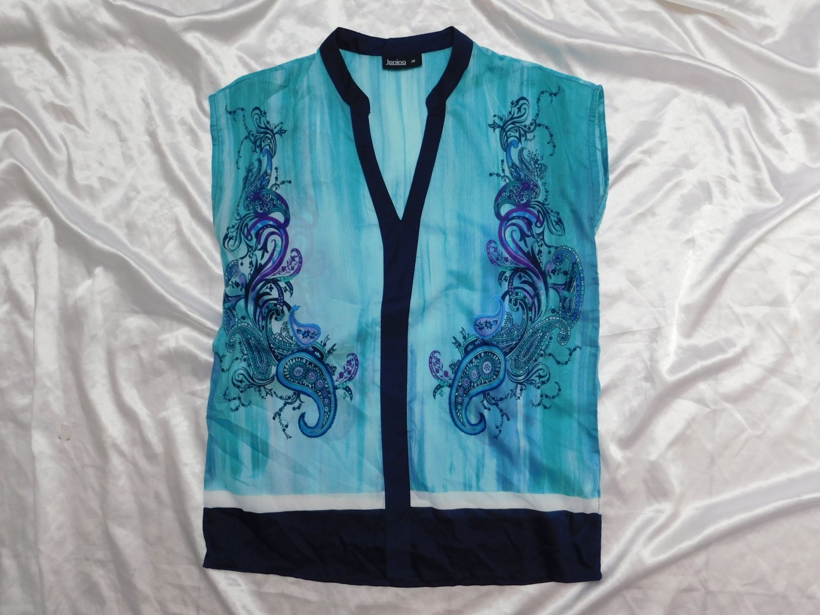 Pekna bluzka,modrej farby s potlačou.100%polyester.super stav,ako nova. le41