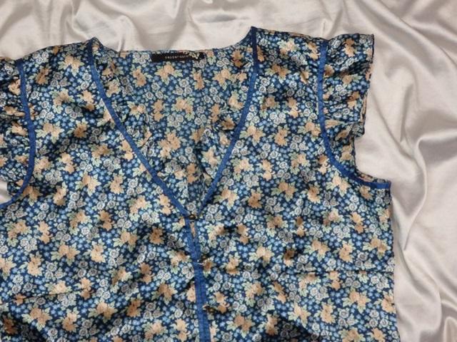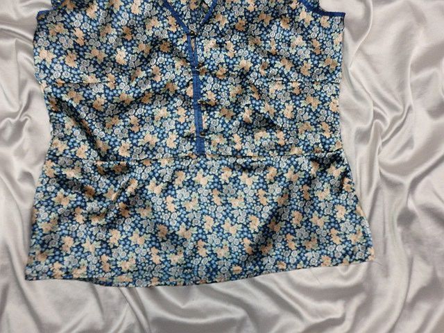 Kvalitná letná saténová blúzka, tyrkysovozelenás béžovou potlačou, materiál 100% polyester, super stav.