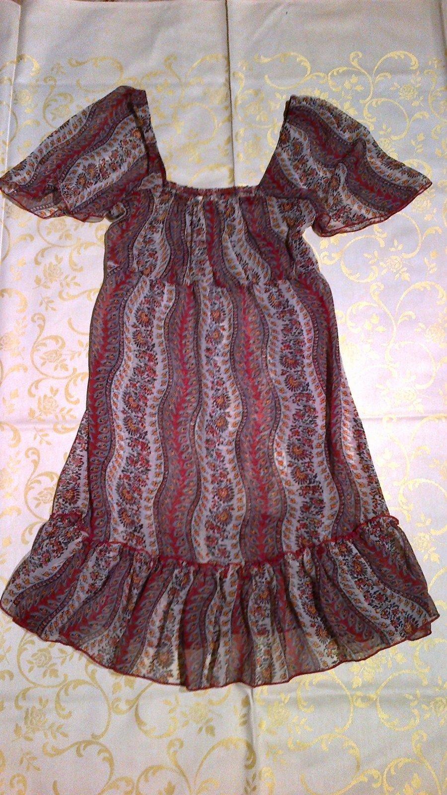 Predám Ľahučkú, skoro priesvitnú( nepotrebujete pod to nič-zakryje), šatovú tuniku Ideálnu na Leto, Neškriabe, Vhodnú aj pre tehotné mamičky na veľkosť košíka A, B alebo C. Dĺžka je tesne pod zadok-od pliec je to 85 cm. Veľmi pekne ukáže. Veľkosť- 34/36. Materiál- 80% polyester, 20% bavlna.