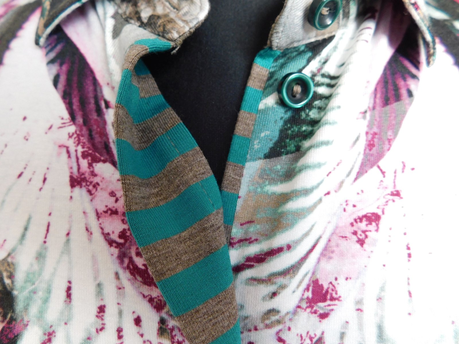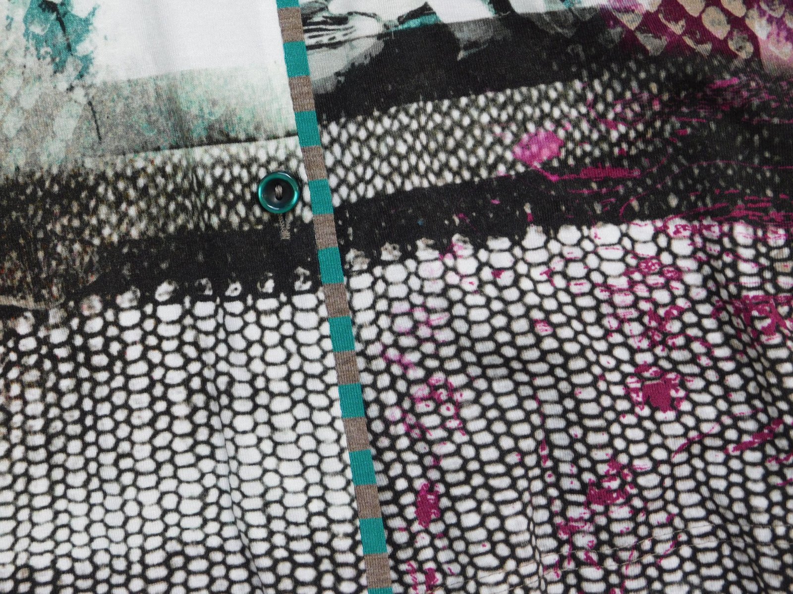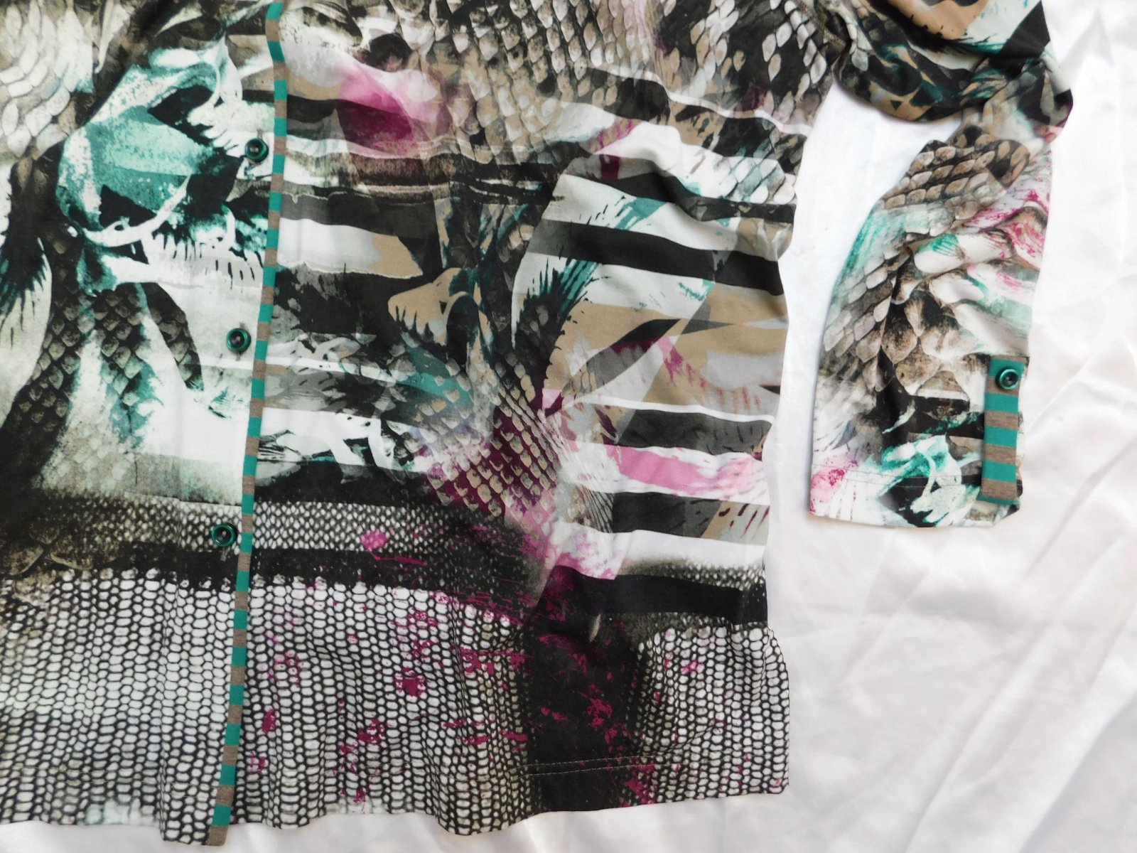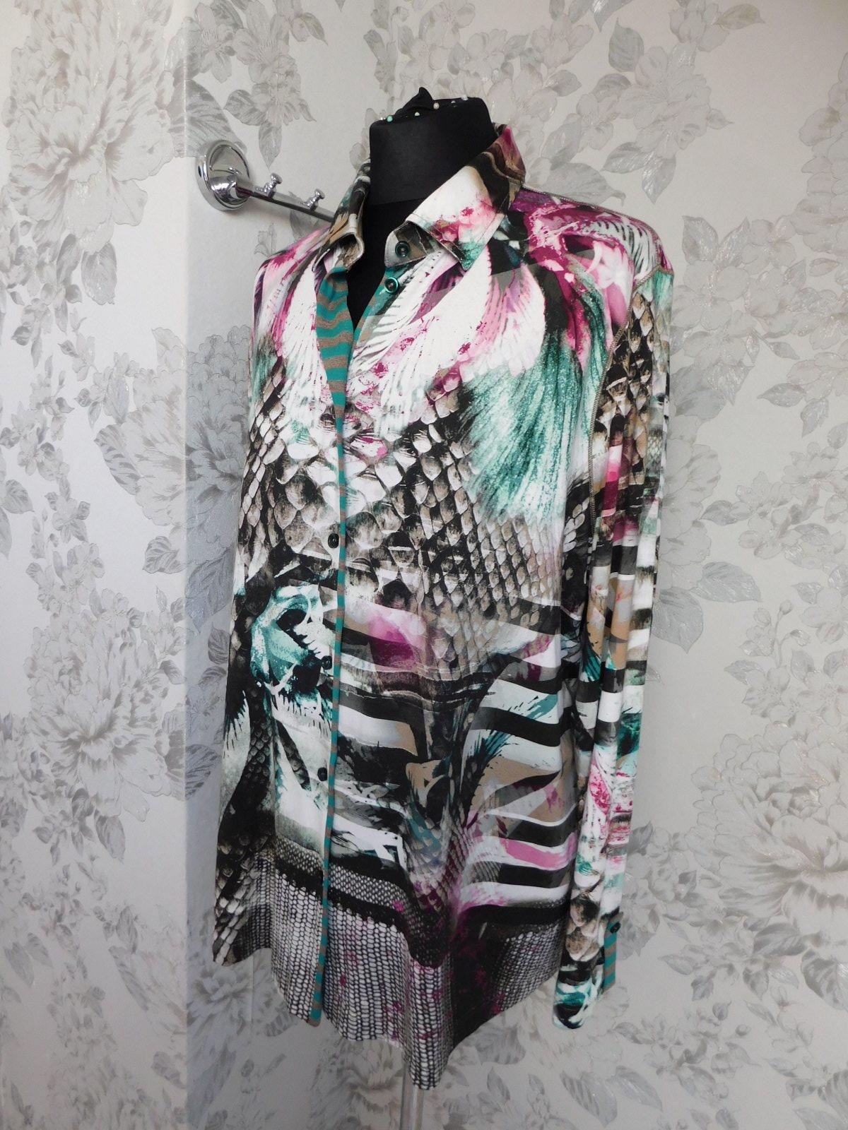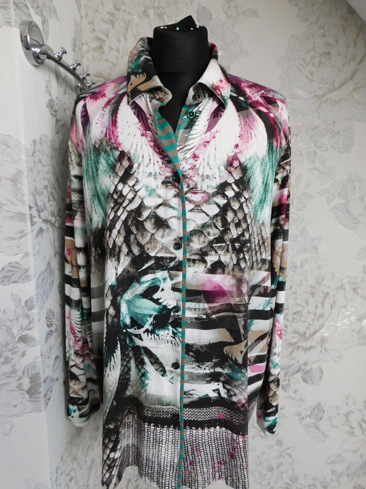 Luxusna košelova bluzka,s potlačou,z jemenho upletu.93%viskoza,7%elastan.ako nova. se22