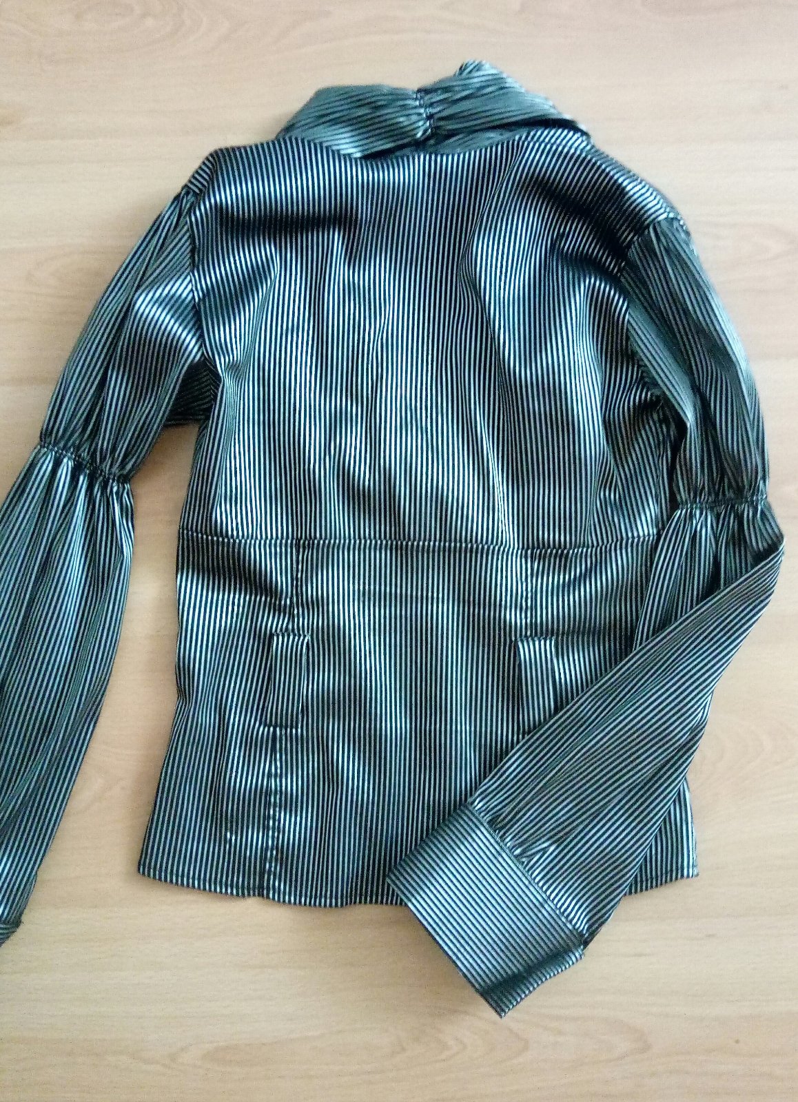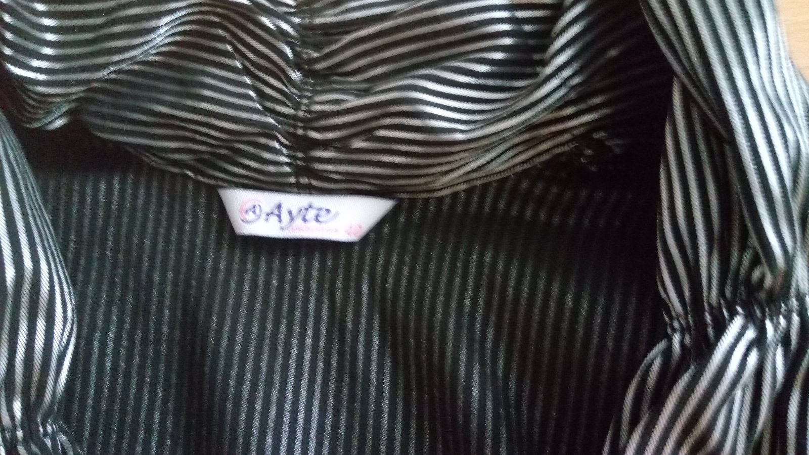 Čiernobiela s leskom. Veľkosť uvedená 40, ale pekne sedí aj ako 38. Materiál je elastický, prispôsobivý.