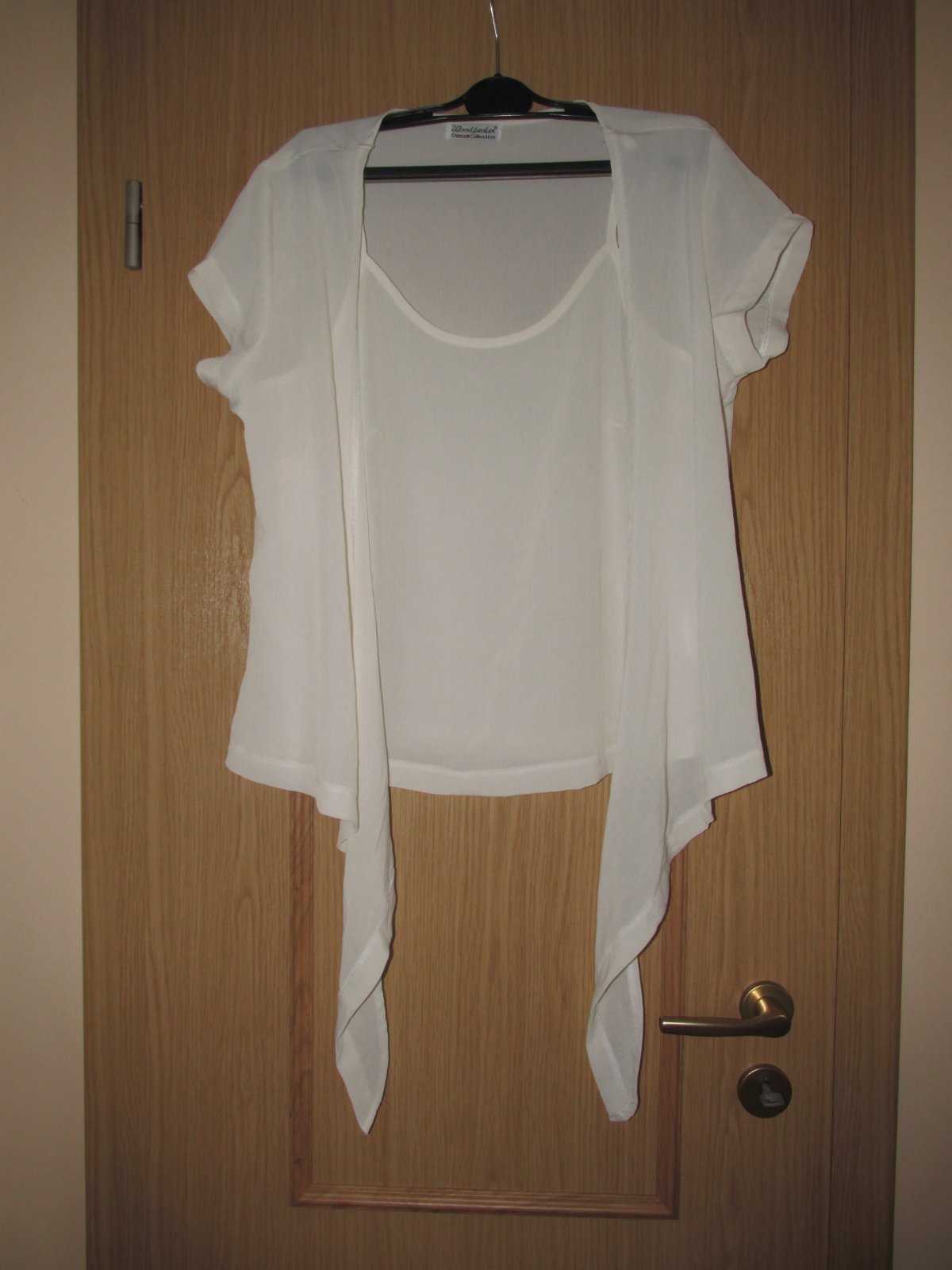 Predám novú nenosenú blúzku, v predu sa zaväzuje, je to ako tielko a na vrchu blúzka, ale je to spolu - foto.Značka Woodpecker.
