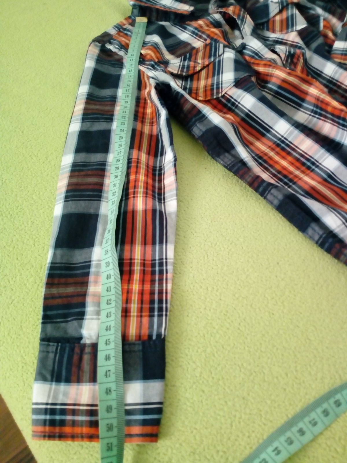 Predám krásnu košeľu v top stave. Celková dĺžka je 47cm a rameno rukáv je 41cm.