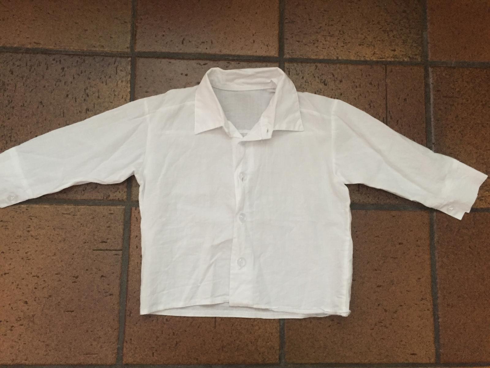 Kosela pre maleho fesaka, tensieho materialu, jednoducha, biela klasika, lahko kombinovatelna, na bezne aj prilezitostne nosenie ;) bez poskodenia akurat treba prezehlit ;) pisu 68, ale podla mna viac: vid rozmery: dlzka: 30cm, sirka: 28cm, rukav od krku: 30cm, vnutorny rukav: 20cm