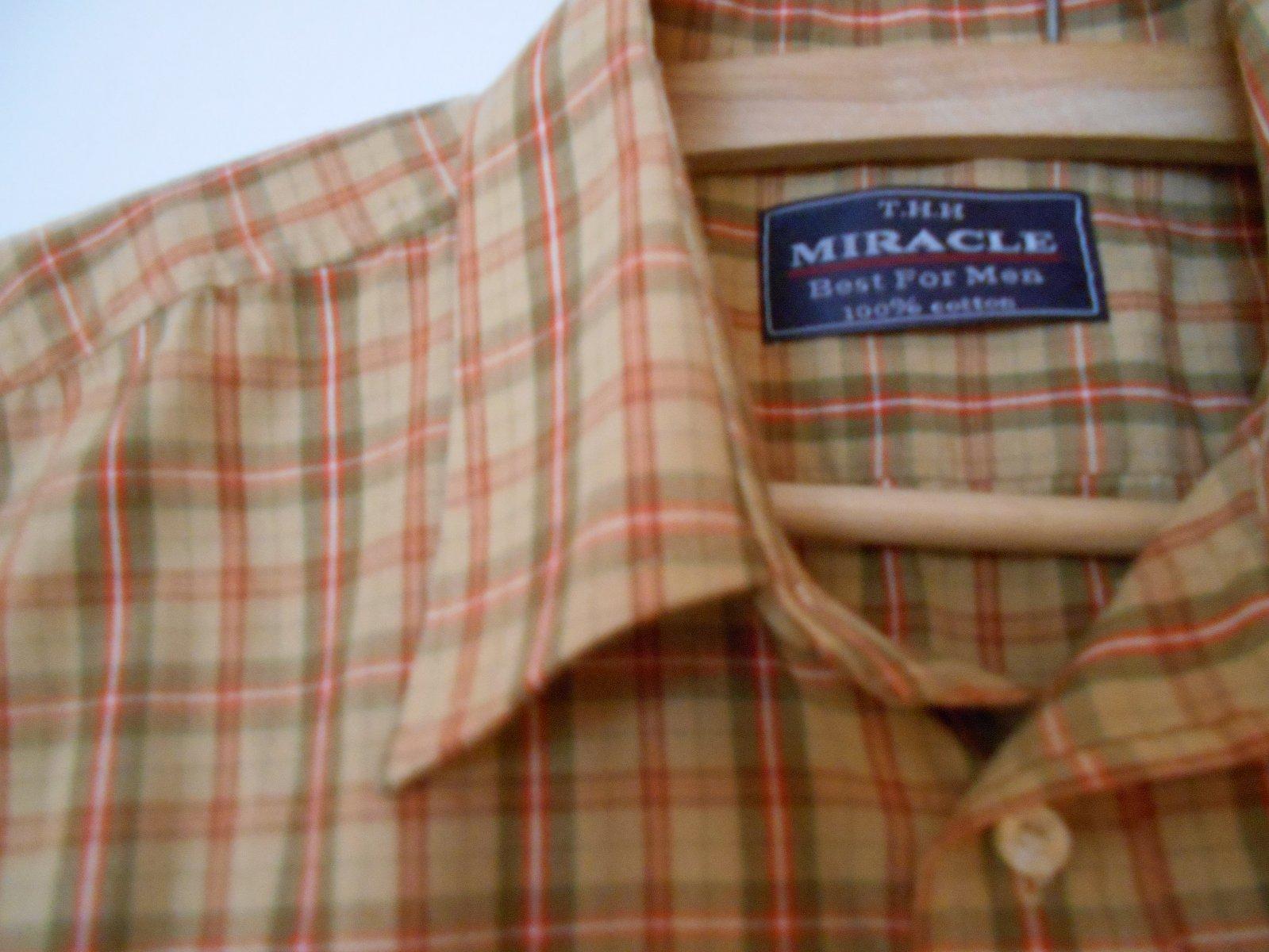 bavlnená košela zachovalá, karovaná, pomarančový pásik a hnedy