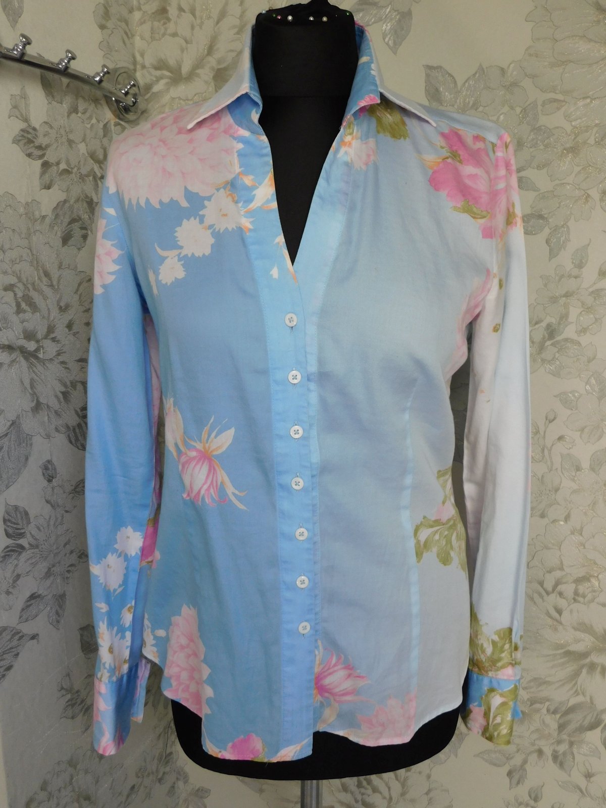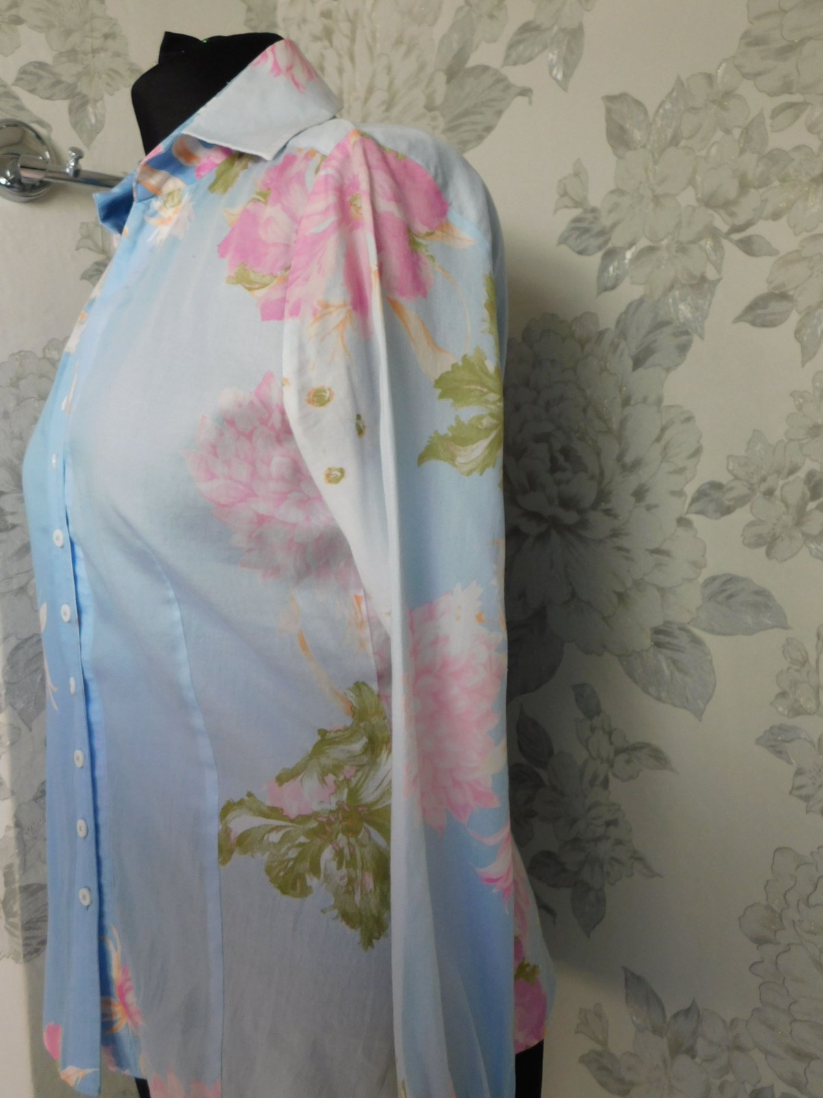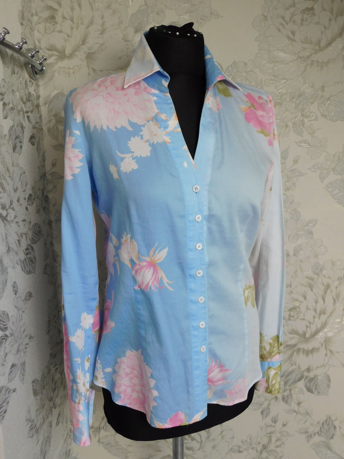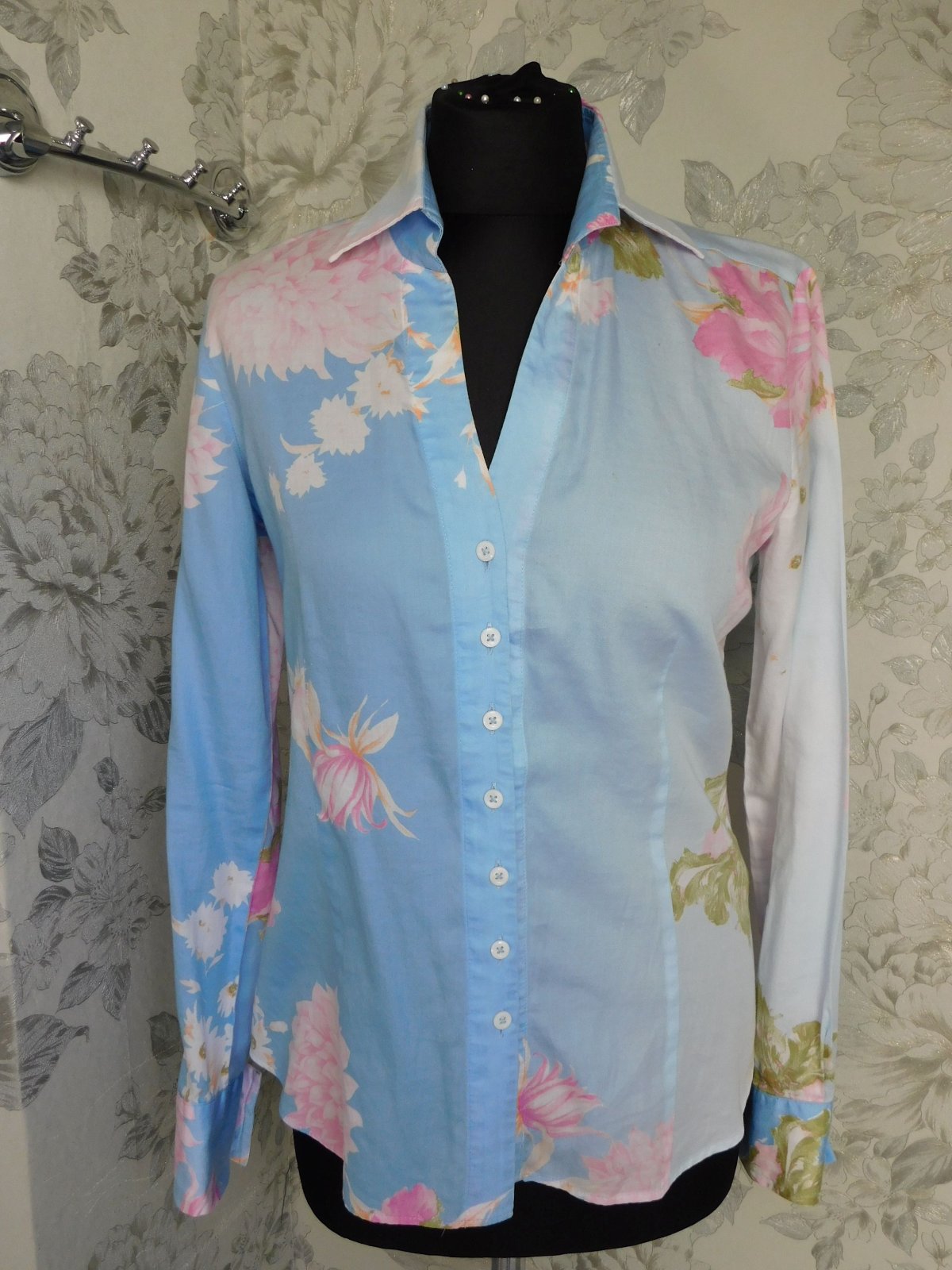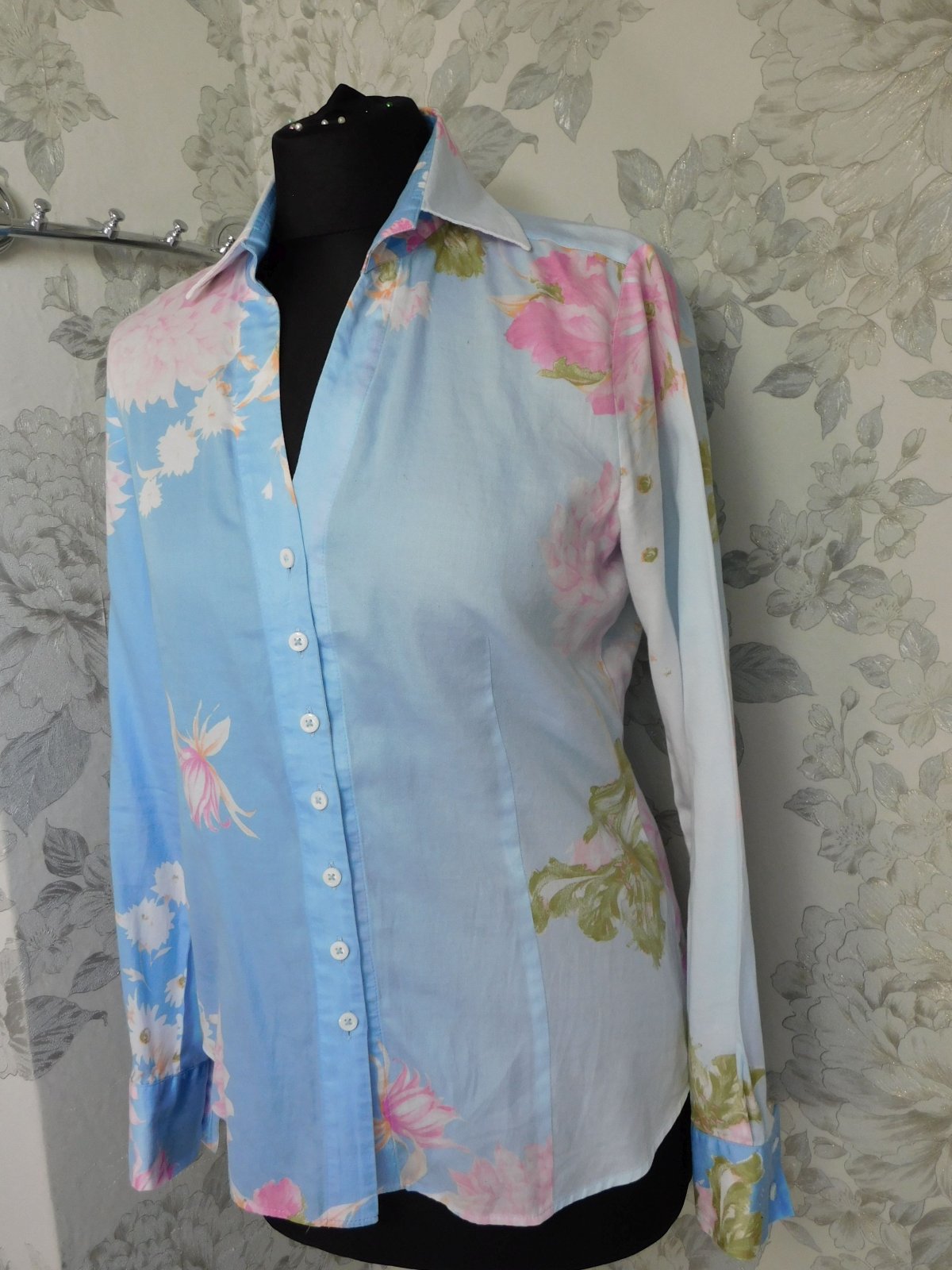 Kvalitna košelova bluzka,bledomodrej farby s naročnou potlačou.100%cotton.super stav,ako nova. j46