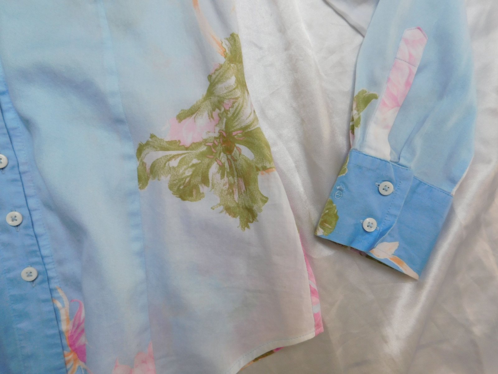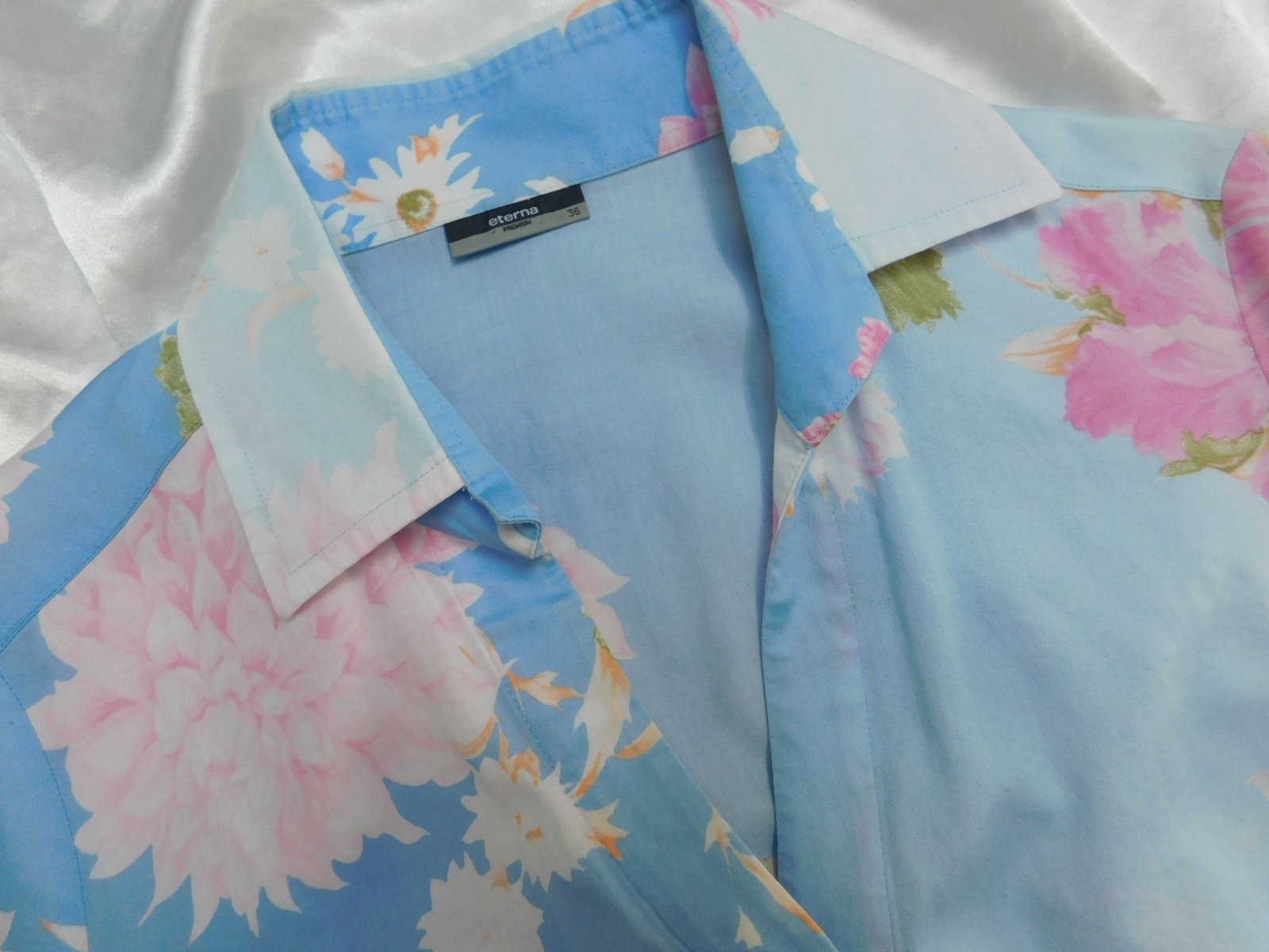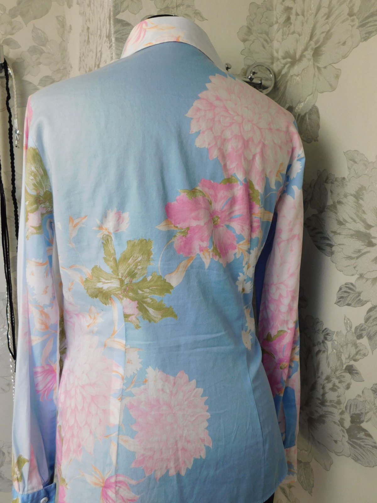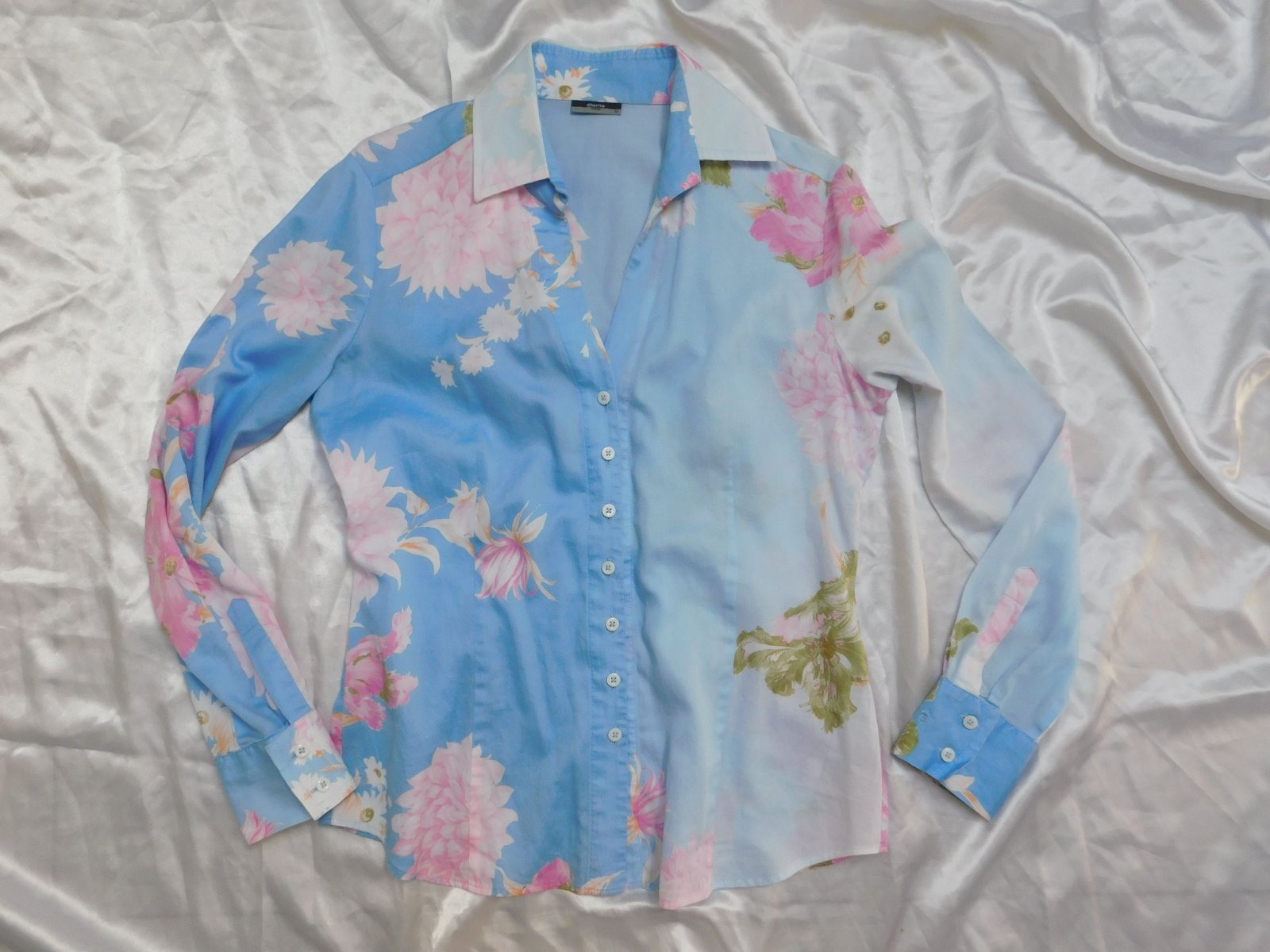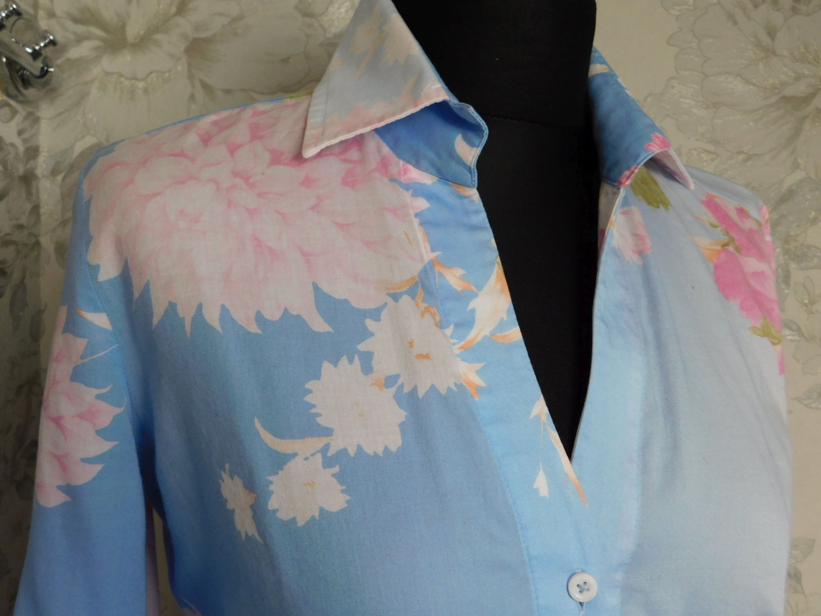 Kvalitna košelova bluzka,bledomodrej farby s naročnou potlačou.100%cotton.super stav,ako nova. j46