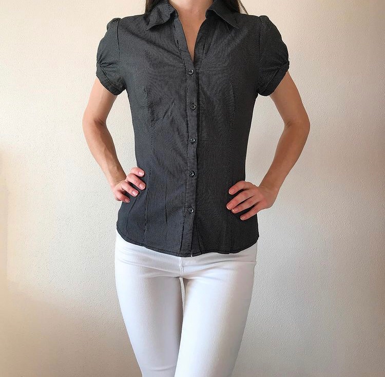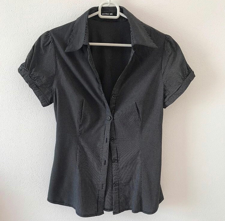 🖤 Košeľová blúzka značky N&P NUOPAI 👚 Veľkosť: L ✨ Krátky rukáv, jemne priesvitné vzory po celej blúzke 🔸 Ľahučký materiál – 100 % polyester, priedušná a pohodlná na nosenie 🌸 Elegantný a univerzál...