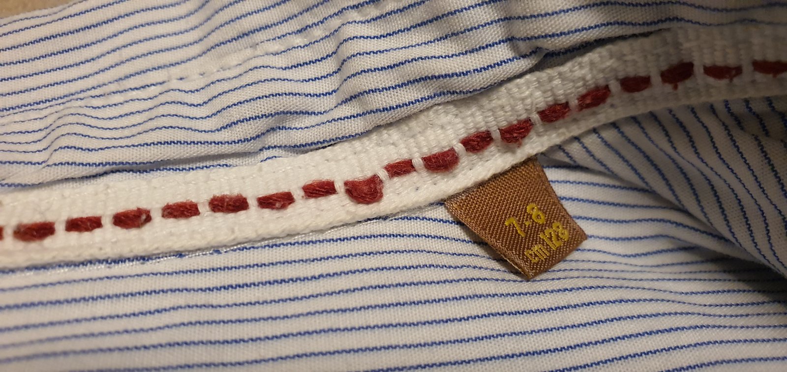 bielo modra kosela s pasikmi. 100 % stav. nahradne gombiky, scooby doo styl. rozmery