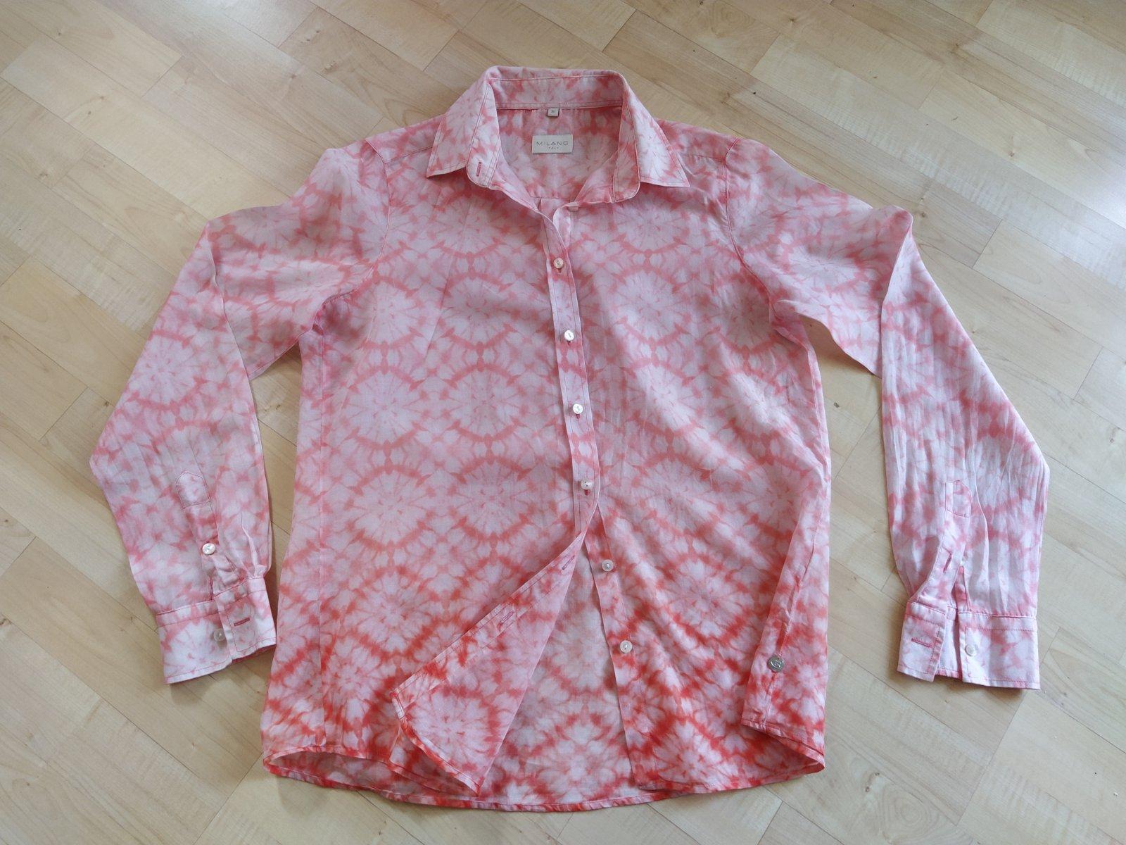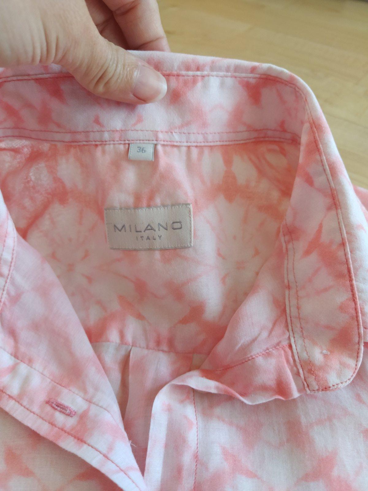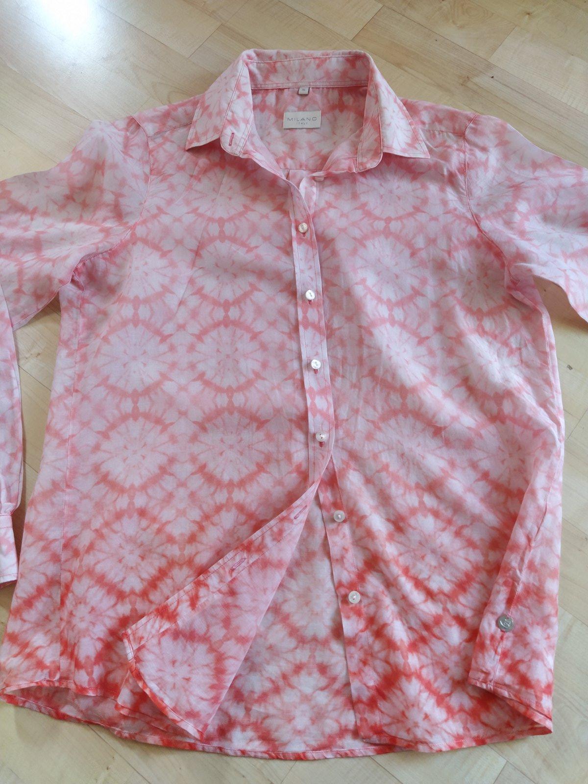 Veľmi tenká bavlnená blúzka, značka Milano, sedí aj na veľkosť 38. Krásny batikovany vzor, celková dĺžka blúzky je 70 cm, šírka v oblasti pŕs je 50 cm, dĺžka rukáva od ramena je 63 cm, dĺžka rukáva od pazuchy je 50 cm. Bezchybný stav, cena+pošta