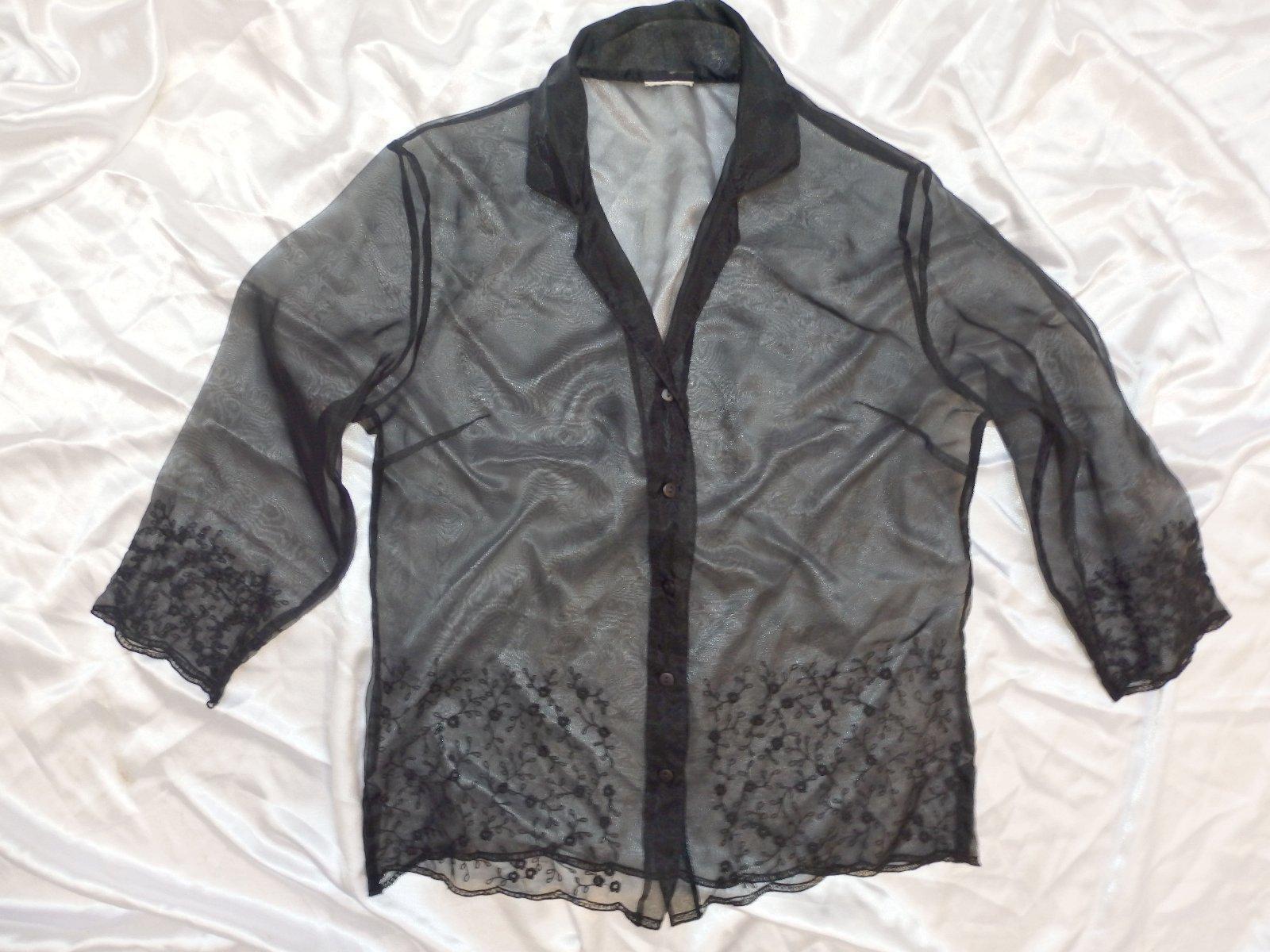 elmi pekna bluzka,čiernej farby,presvitny material,spodok a rukavy zdobene vysivkou,vhodna nosit s spodnym topom alebo na saty.super stav.