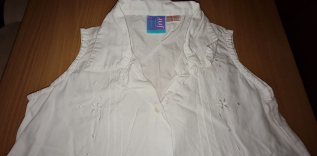 bez rukávov, smerom dolu rozšírená, vpredu vyšívaná, dolu maličké rozparky, bavlna, perfektný stav