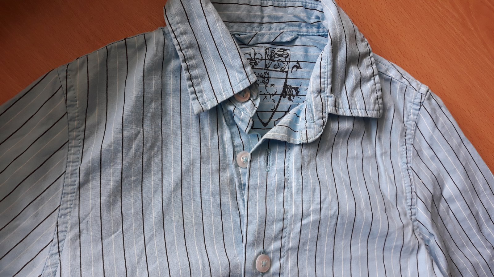Nosena malo, stale pekna, farba sa zle fotila, nie je ani taka bleda ani tmava ako na fotke, taka medzitym, velkost tak na 3 roky, dlzka 39cm, rukav od krku 40cm