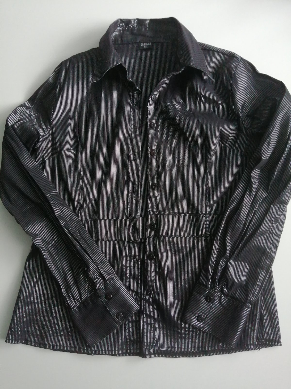 Elastický mat., dlhé rukávy, viď. foto s mierami. Zn. Greatlooks Štítok je vystrihnutý. Farba: šedá a čierna Výstrih do V. 3509