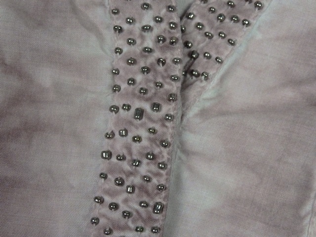 Kvalitná dámska blúzka pudrovoružovej farby, jemne batikovaná, výstrih zdobený našitými korálkami, materiál 100% bavlna, super stav.