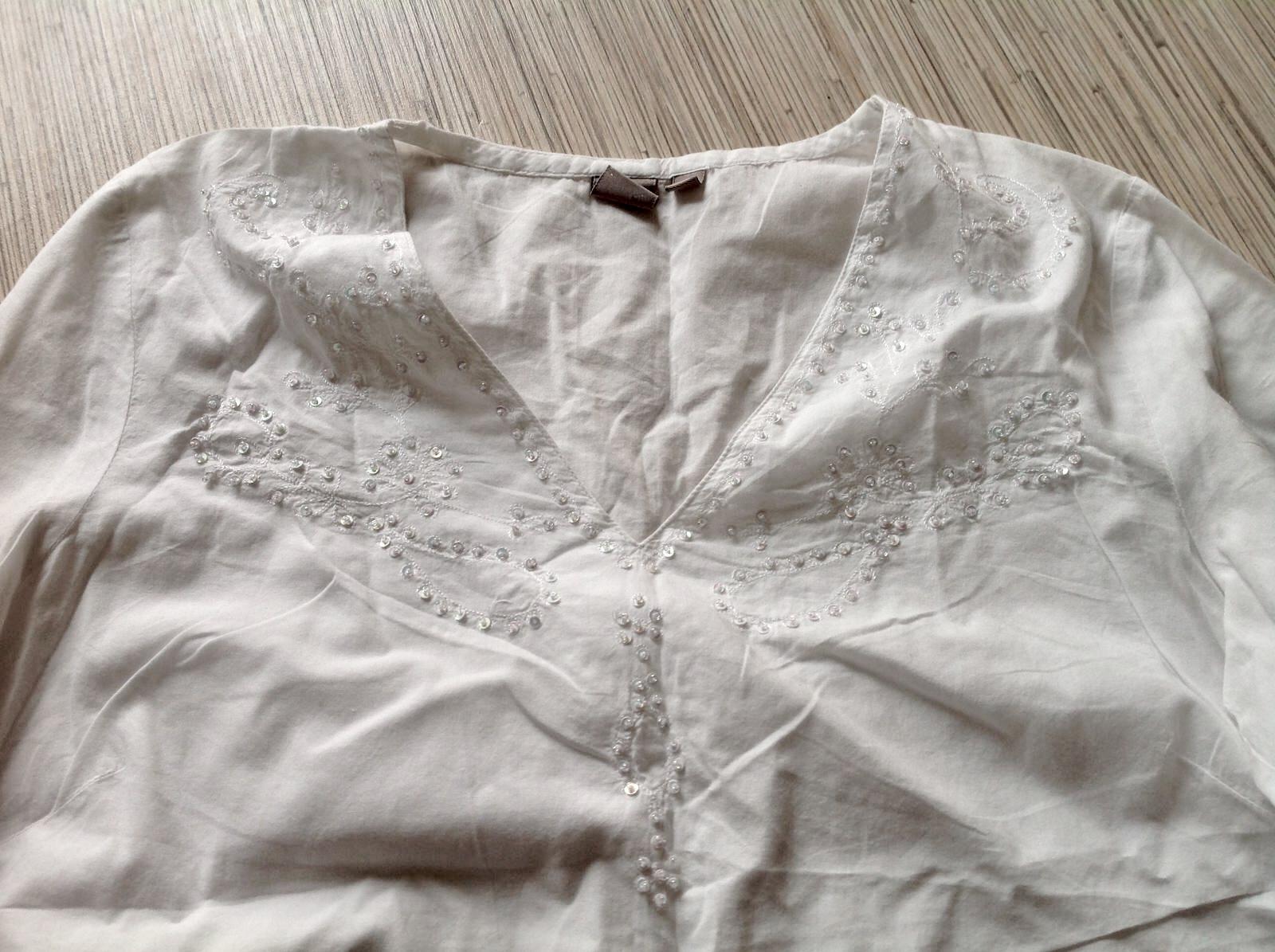 Pekna bavlnena lahulinka bluzka na letne dni,sedlo vysivane aj okolo spodku rukavov,velkost uvedena 10,podla rozmeru aj 40