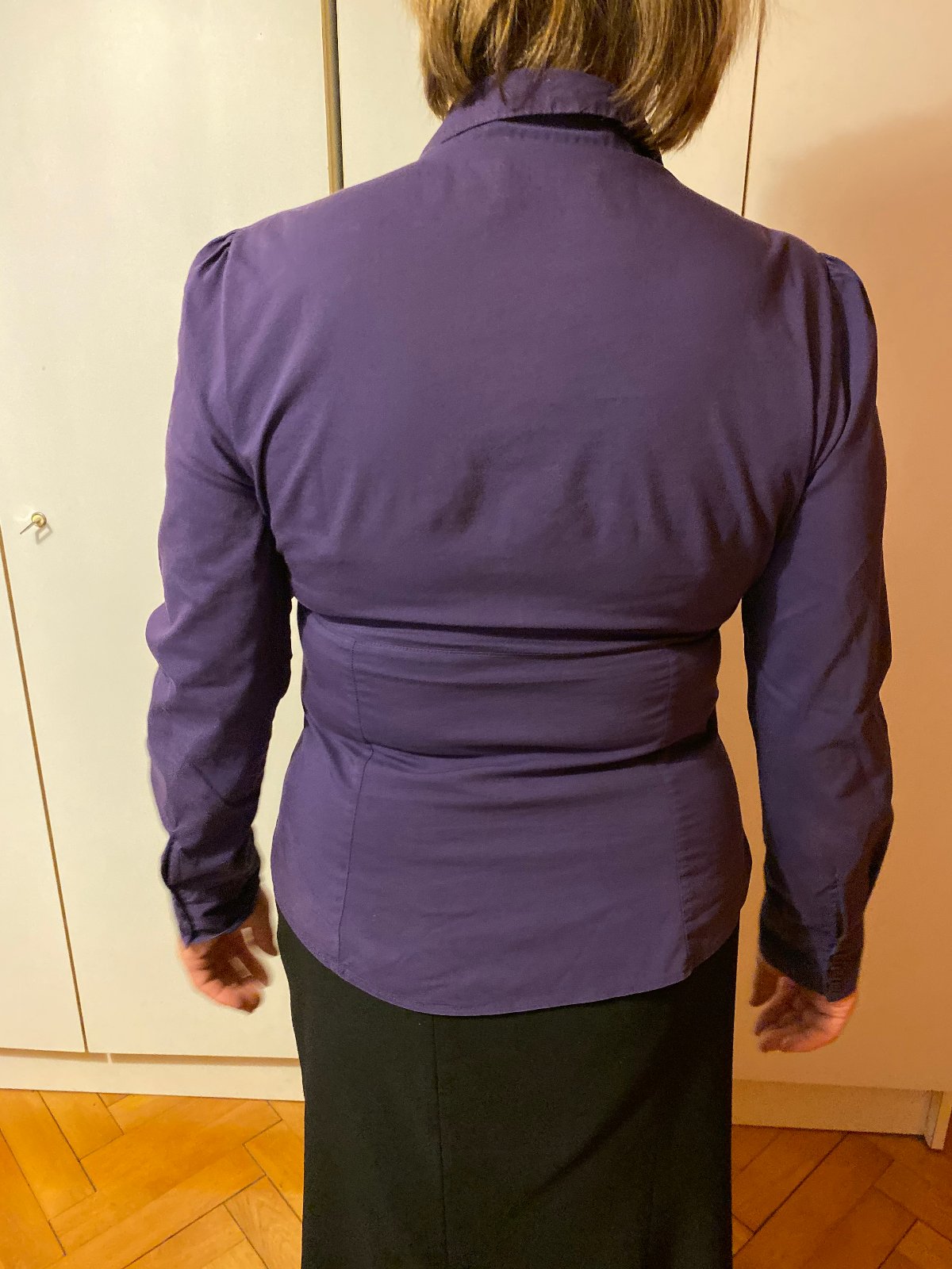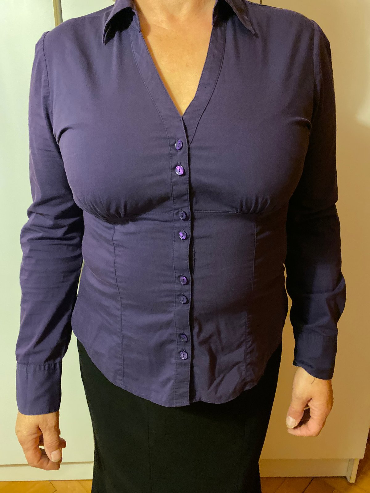 predám fialovú blúzku. Uvedenú veľkosť má 44 ale jej rozmery odpovedajú veľkosti "42". Blúzka je ukončená v zadu do veľmi mierneho oblúčika.V predu i vzadu je prestrihnutá a ukáže pekne na postave, materiál je mierne elastický.Dlžka cez chrbát je 62 cm,cez prsia 100 cm.