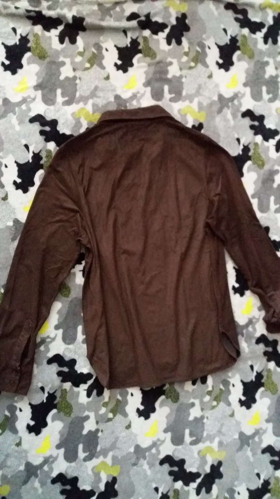 Zachovalá tm.hnedá blúzka.Tmavšia farba ako na fotke.Dĺ.71cm, š.pod pazuchou 54cm, dl.rukáv 67cm + 12cm plece