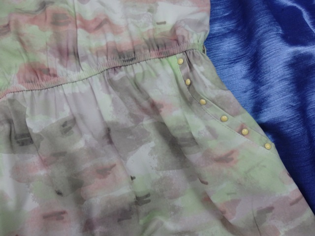 Kvalitná dámska tunika bledých pastelových farieb, podšitá, v páse gumka, materiál 100% recyklovaný polyester, vpredu všité vrecká, super stav.