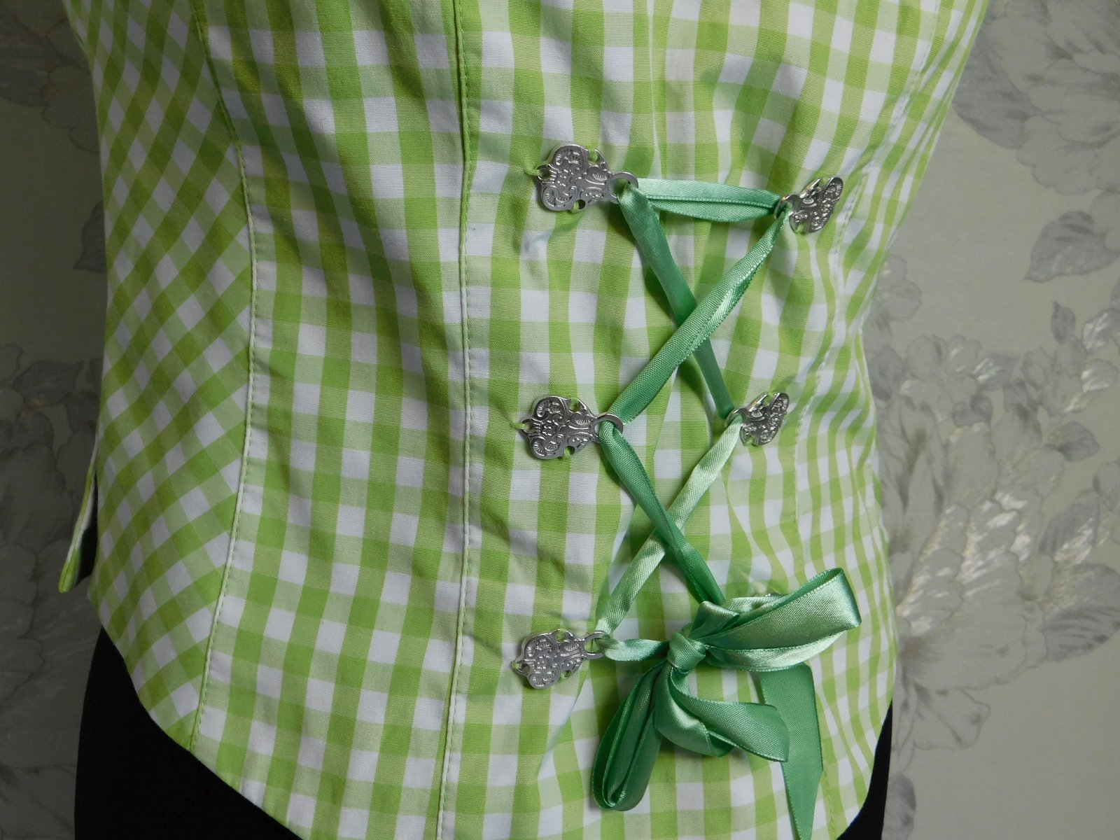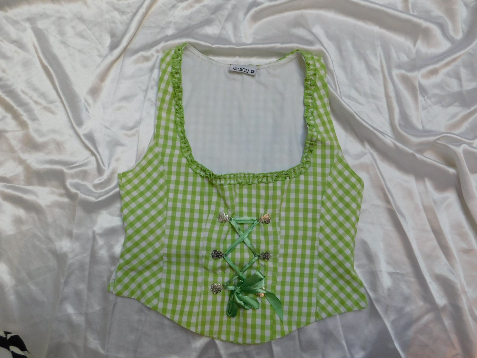 Kvalitna pekna bluzka /vesta ku kroju,zelenkavej farby s potlacou,s podsivkou,na boku zips.super stav,ako nova.