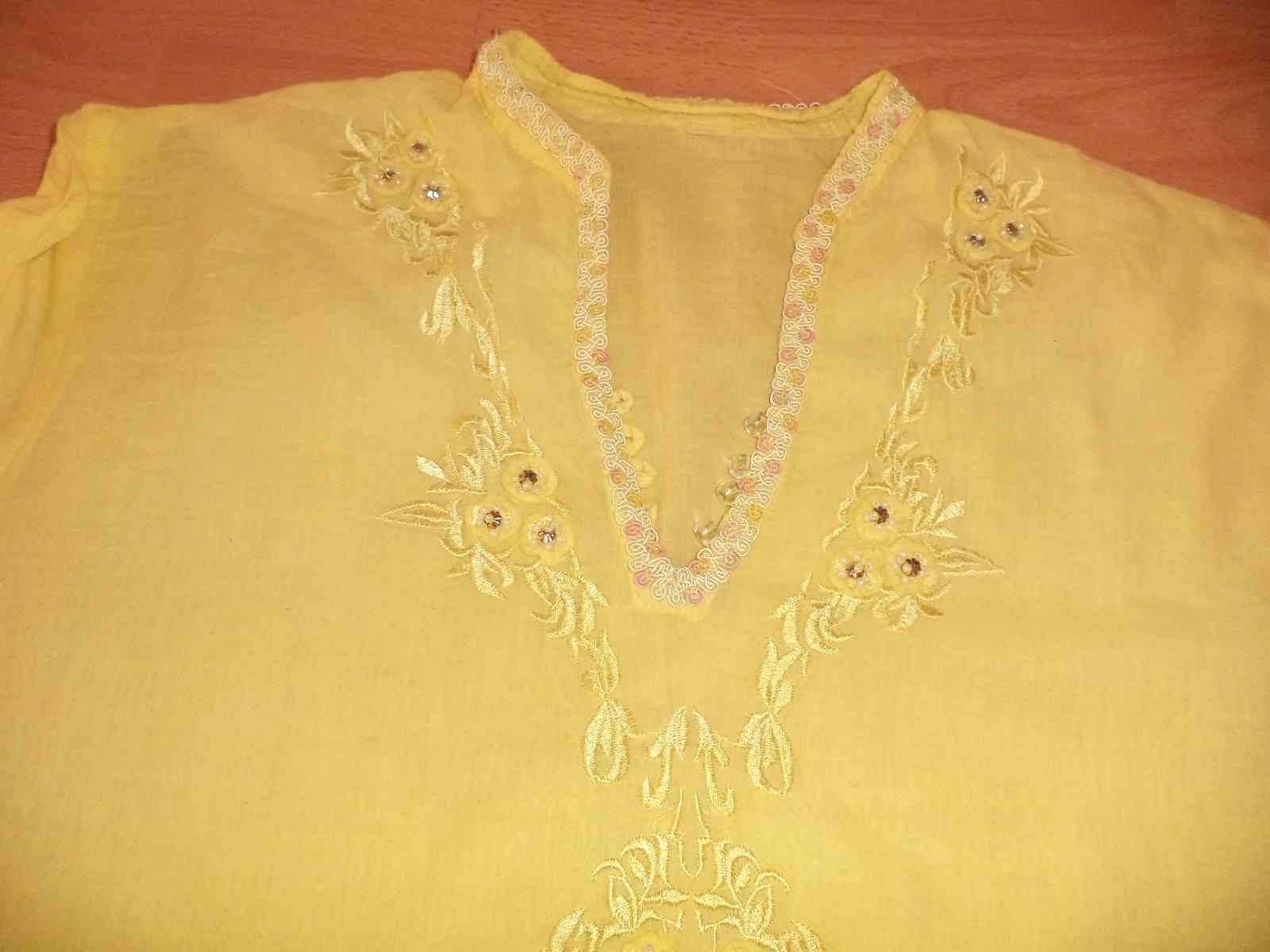 Predam peknu retro bluzku ,okolo vystrihu vyšivanu ,trojštvrťovy rukav ,na boku su rozparky ,lahucky material dlžka bluzky 80cm,