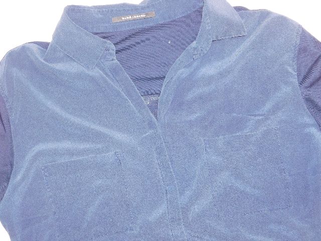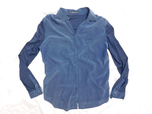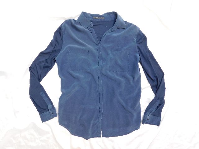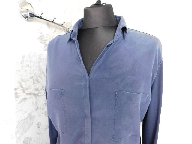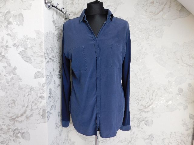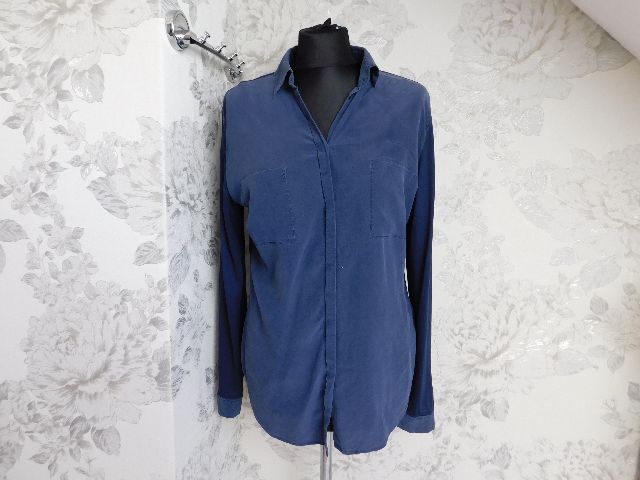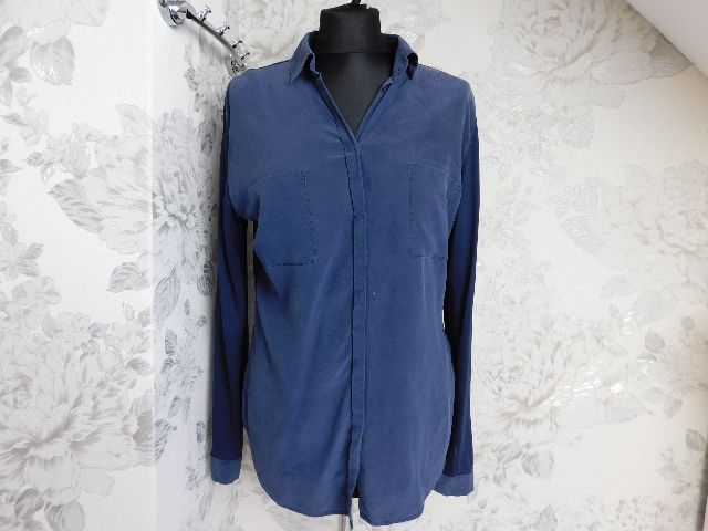 Luxusna hodvabna bluzka,tmavomodrej farby,vpredu z pevneho hodvabu,vzadu z jemneho upletu.100%silk,100%lyocel.super stav.PC 239€. se18