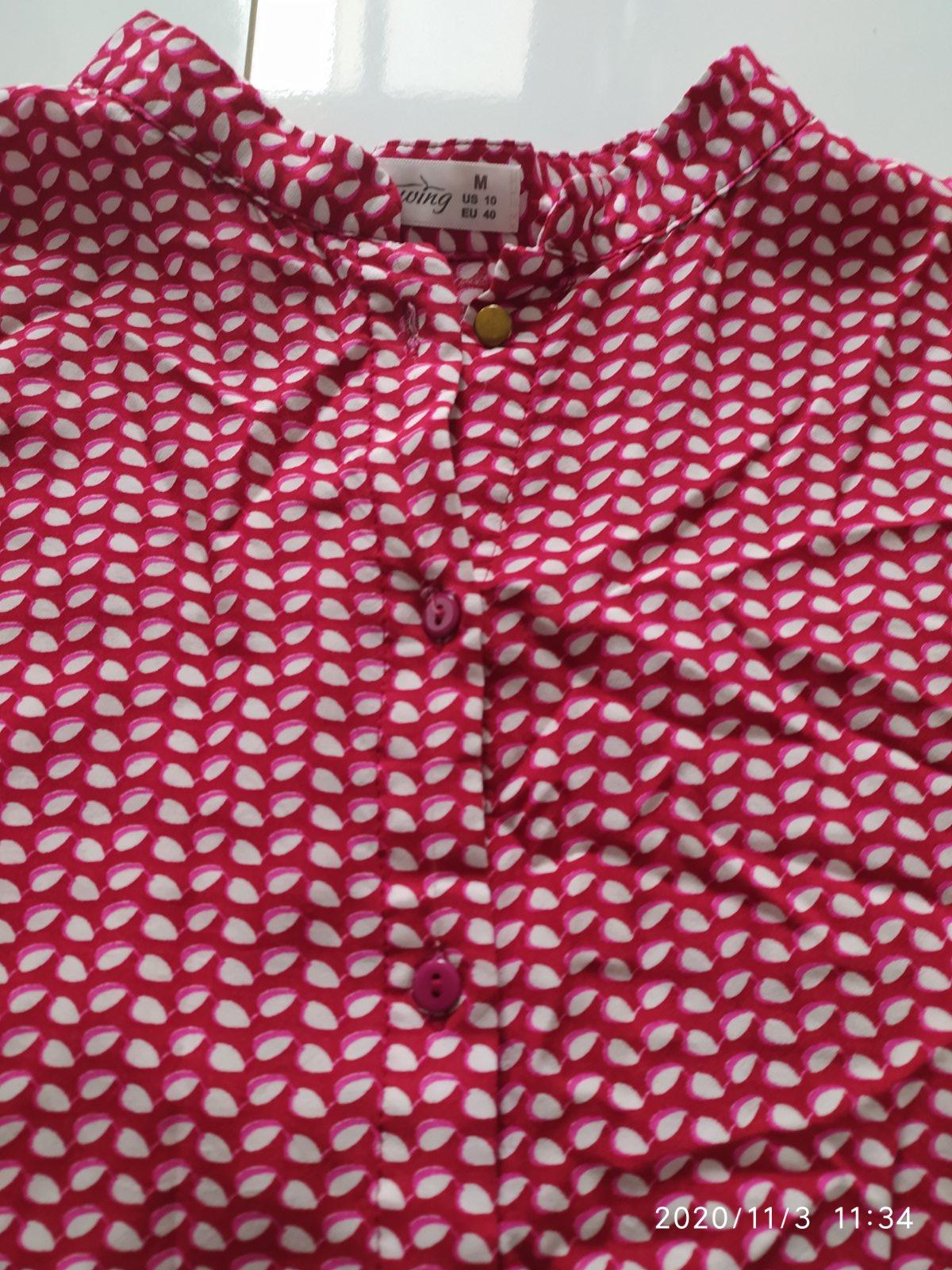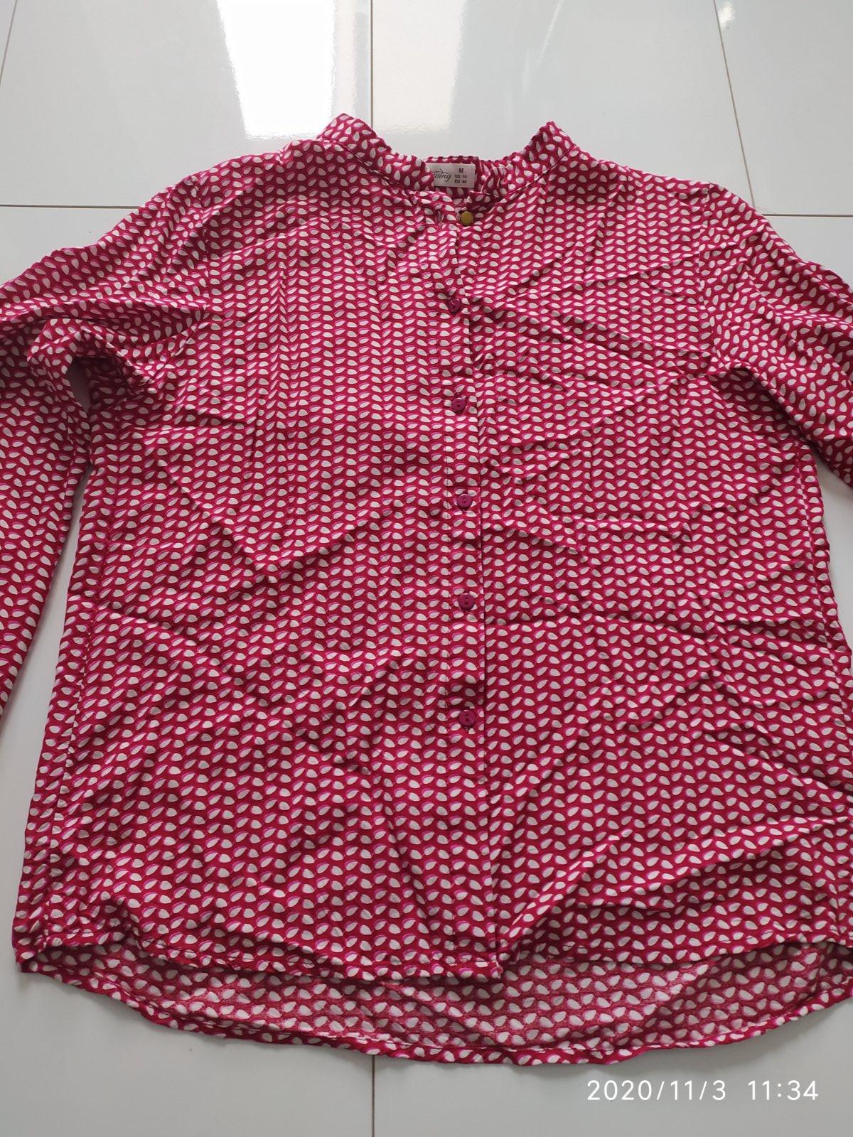 dámska blúzka, veľkosť píše 36, ale podľa mňa určite väčšia, vínovočervenej farby, dlhý rukáv, volánik okolo krku aj rukávov, voľnejší strih, dobrý stav