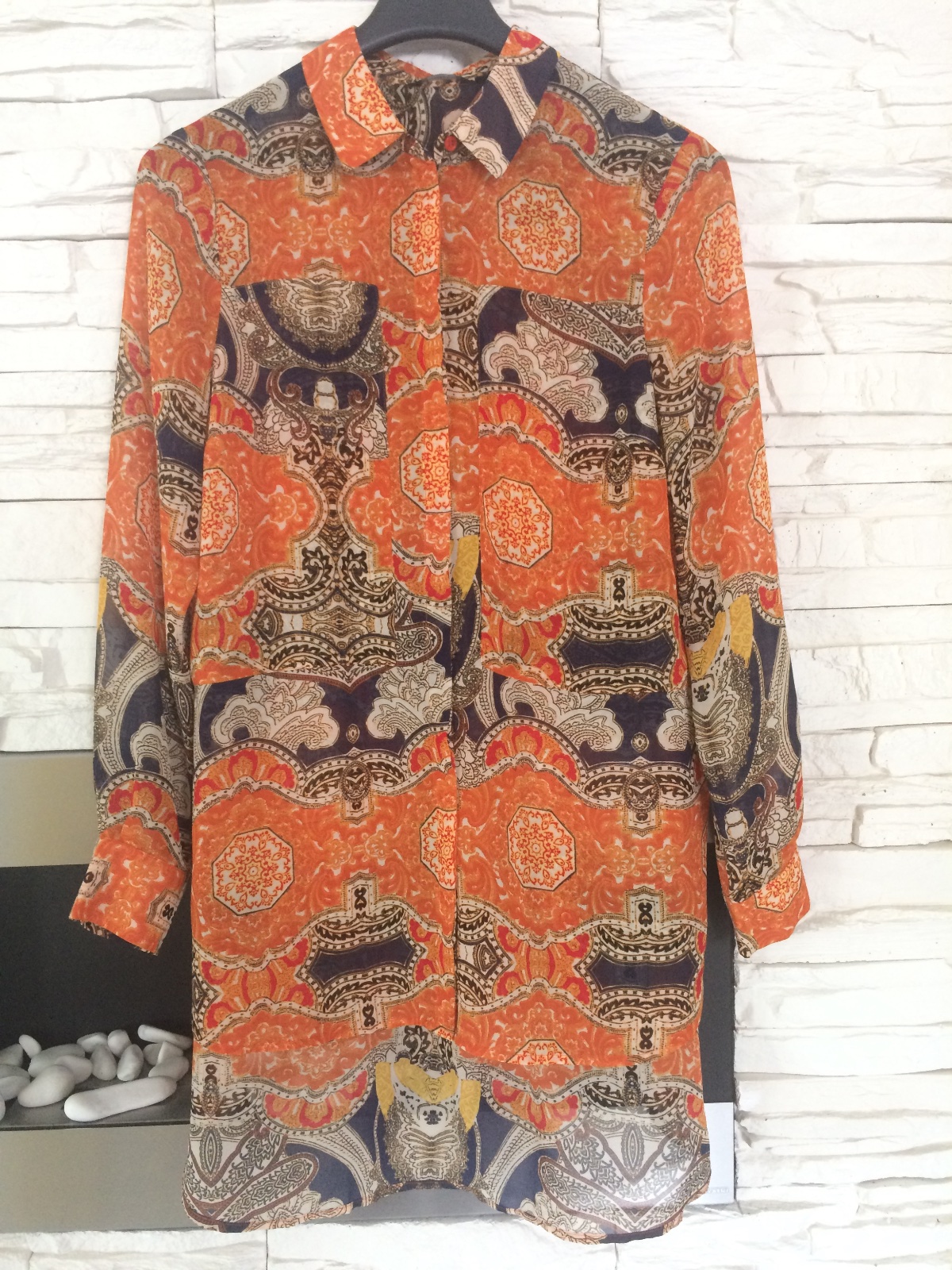 Predlzena sifonova bluzka,oversize strih,zadny diel je dlhsi ako predny.Oblecena 2x,v super stave bez poskodeni
