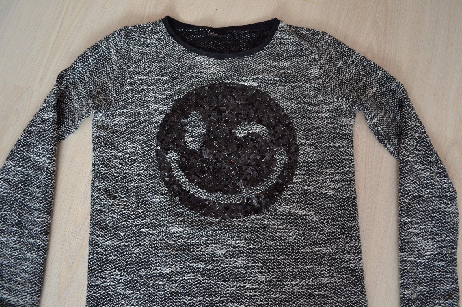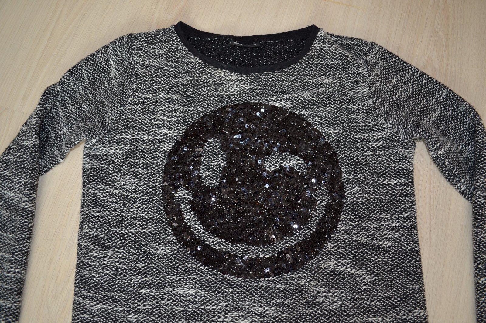 Nadherna ZARA mikinka s okruhlym golierom a dlhym rukavom. Elasticke zakoncenia a volany.Farba oznacena ako drevene uhlie - tmavo siva az do cierna ZLOZENIE : 82% POLYESTER, 16% VISKOZA, 2% ELASTA...