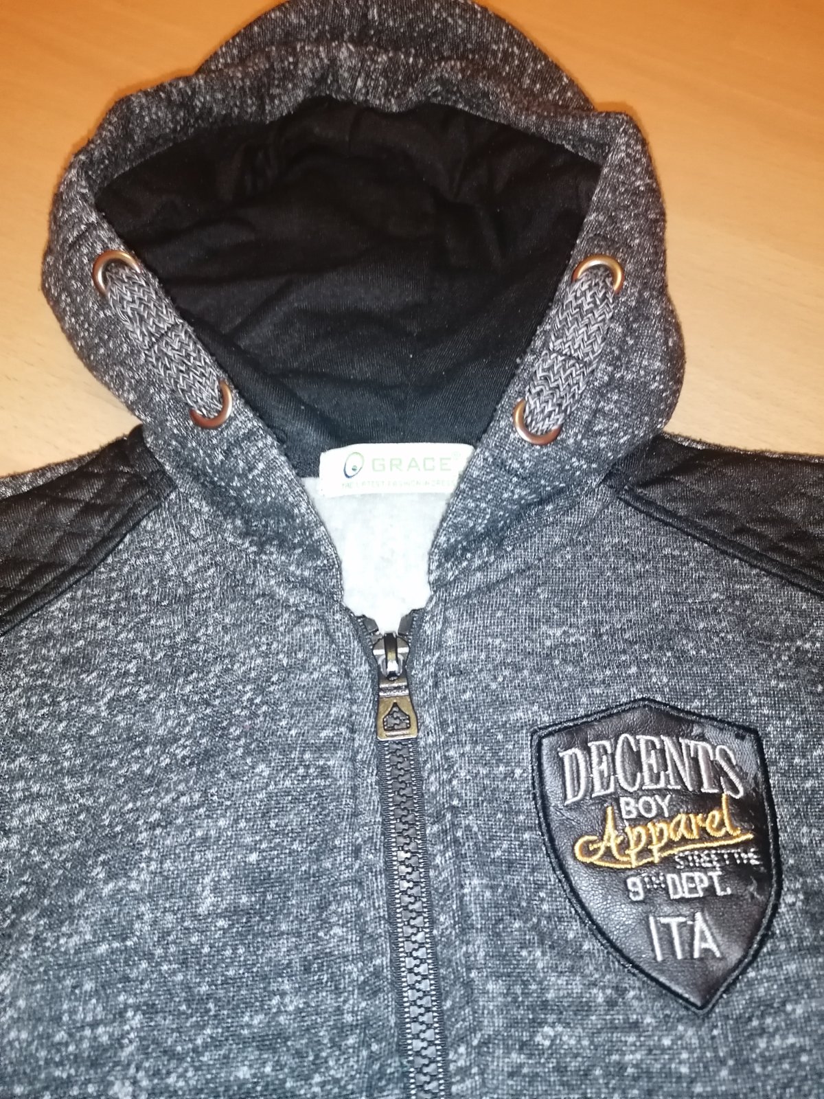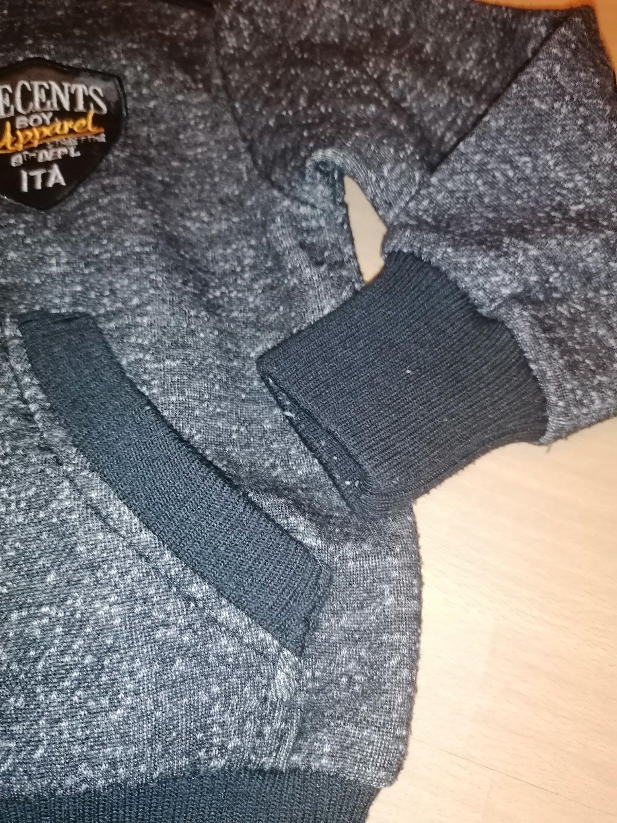 Mikina je v dobrom stave, bez vaznych poskodeni. Ma len minizmolceky od prania (vid foto). Celk.dlzka 42cm, sirka 2x34cm, rukav od pleca 36cm. Velkost 98/104. + postovne