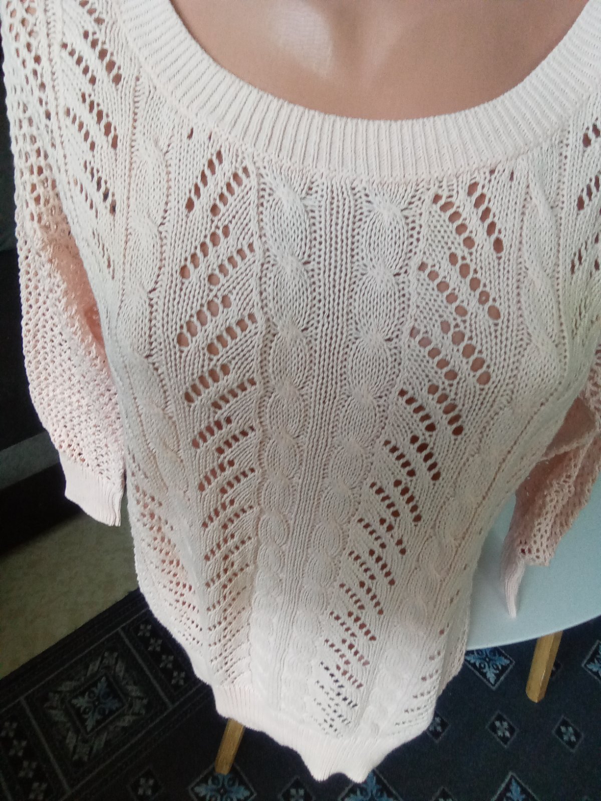 Transparentny ,trendy pulover,noseny,dĺžka 63cm,prsia 46cm,3/4rukávy,veľmi zachovaný-farba ako na poslednej fotke