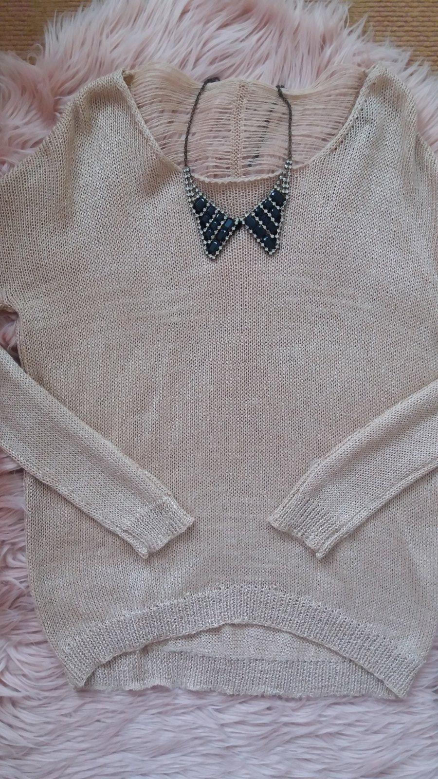 Predam noseny svetrik znacky Gate, velkost 34, dlhy rukav, tensi material. Je volnejsieho strihu a je dlhsi. Vzadu je zaujimavy vystrih. Dobry noseny stav, sem-tam je nejaka nitka povytiahnuta.