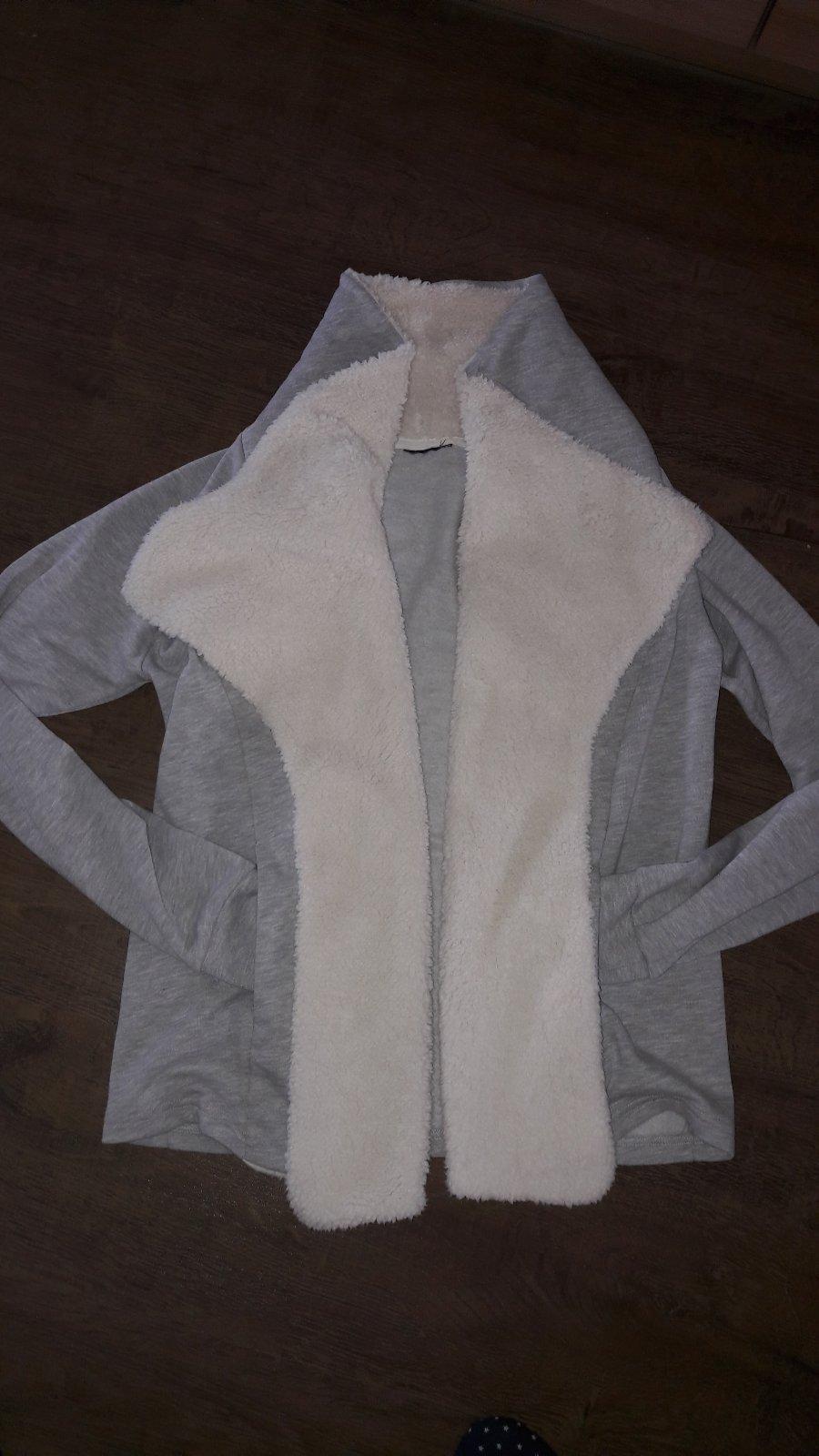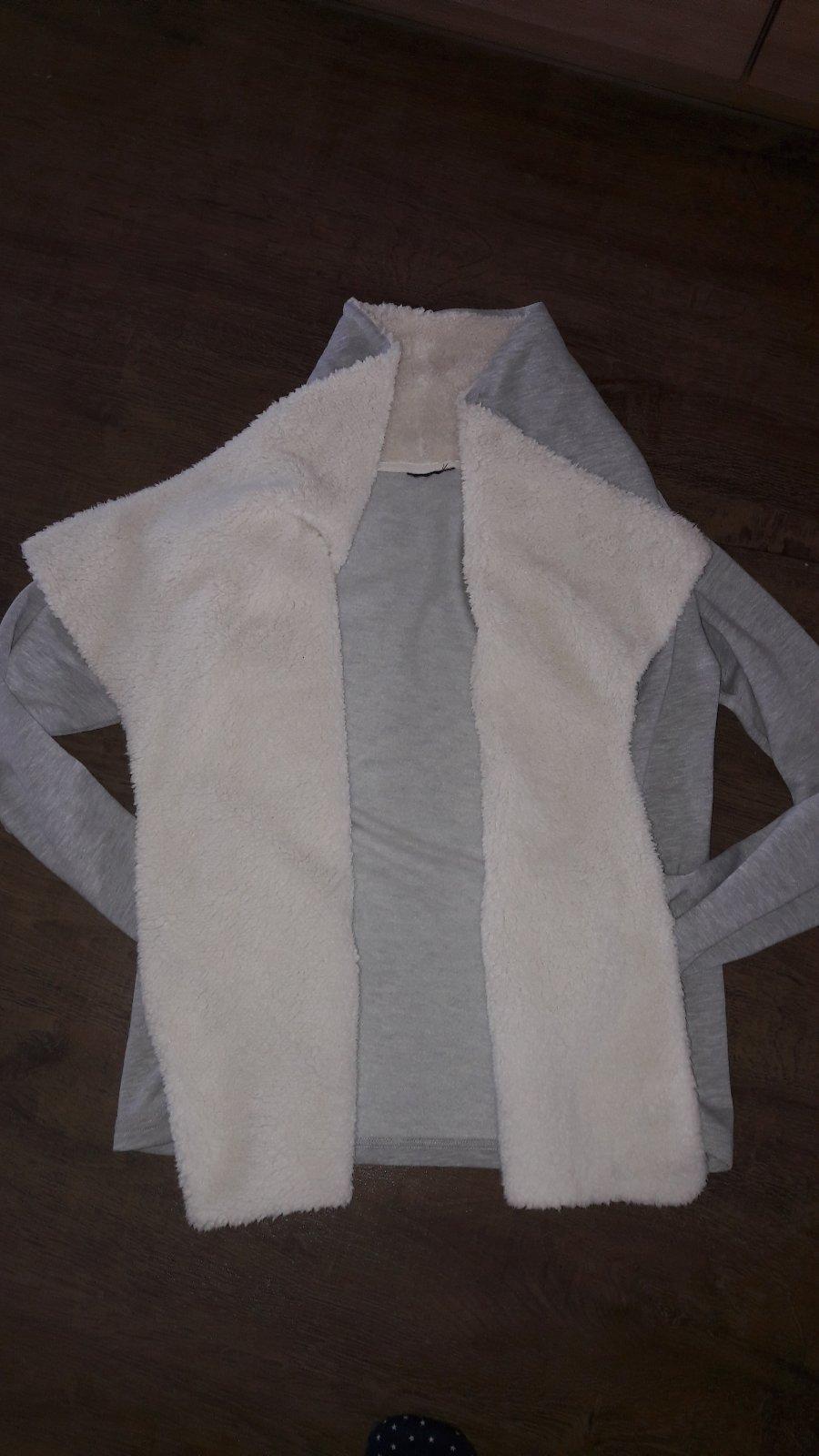Super teplucky kabatik svetlosedej farby Rozmery: dlzka 64, sirka pod pazuchami 50, dlzka rukava od ramena 64