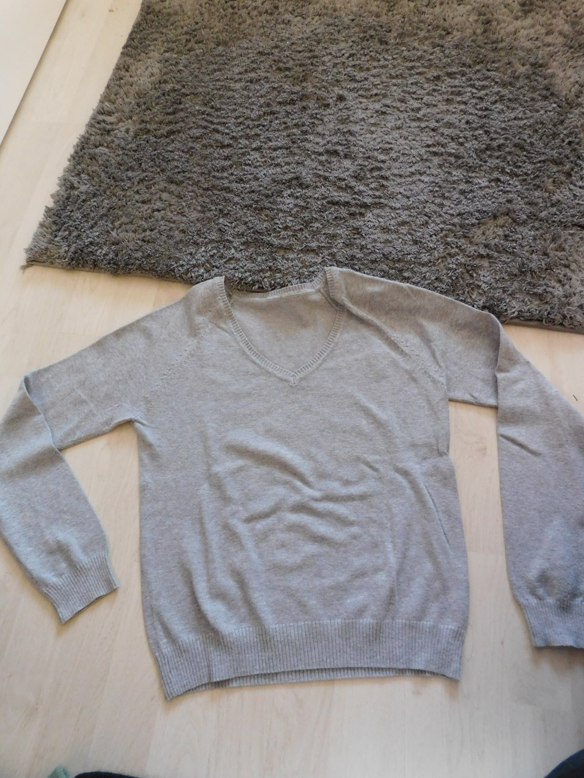 Tenučký, polopriesvitný svetrík. Má odstrihnutý štítok, ale myslím, že to bola značka F&F. Taký jemne chlpatý materiál. Veľkosť S/M. Dĺžka cca 65cm, šírka v podpazuší cca 54cm. Je elastický.