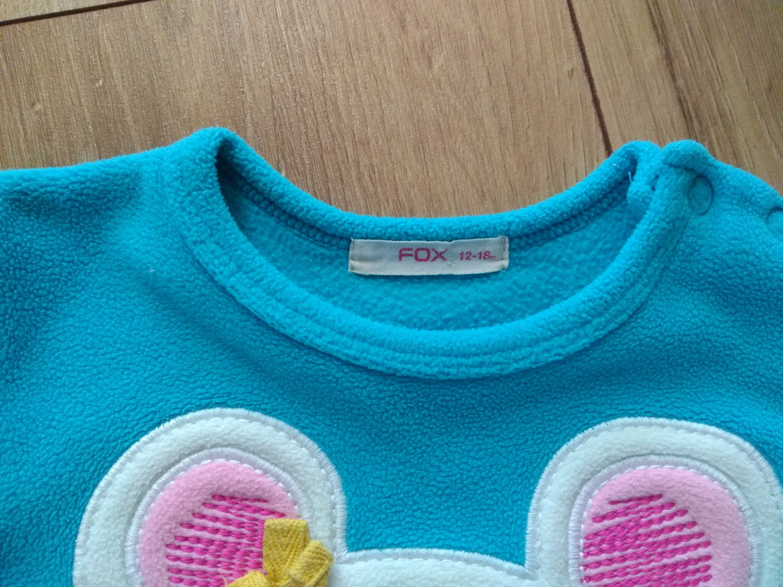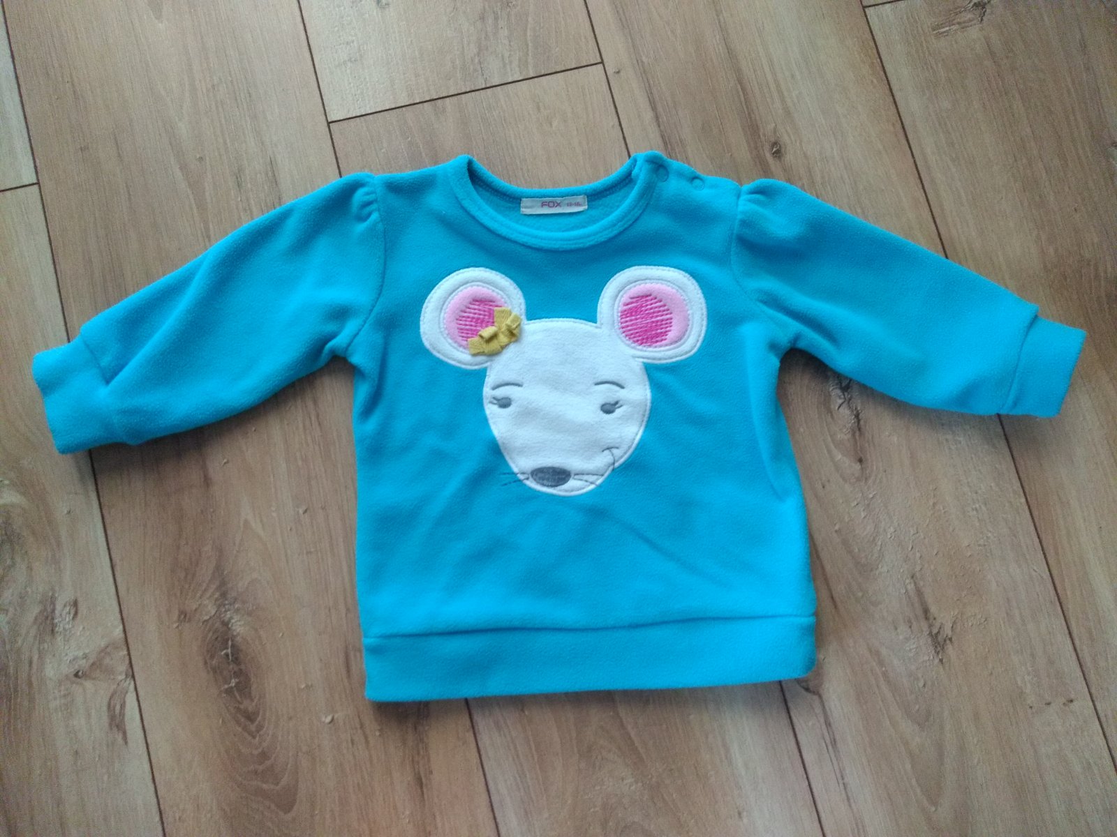 Tyrkysová mikina 12-18 mesiacov..ale je trošku menšia ako píšu..Biela mikina zase väčšia ako píšu.