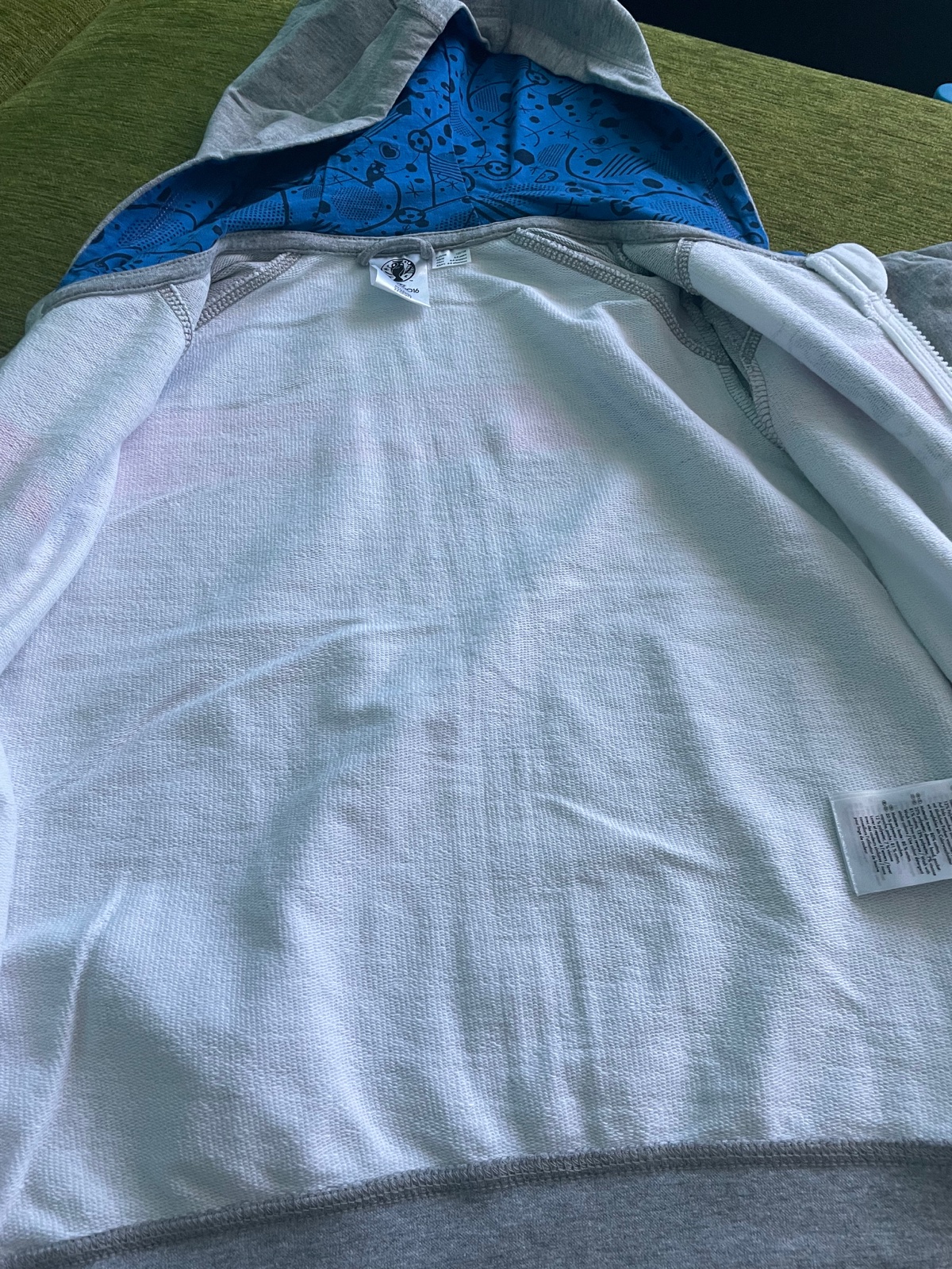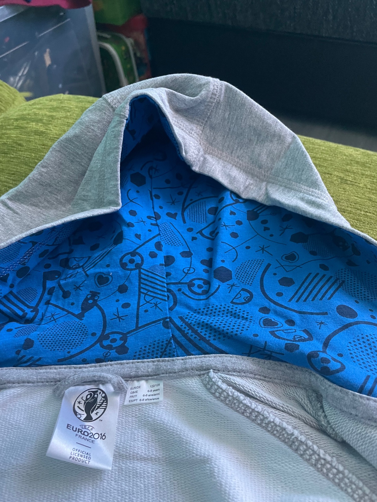 Predám mikinu na zips s kapucňou vo veľmi dobrom stave.Veľkosť 122/128 pre 6-8 ročné deti. Dĺžka mikiny je 48 cm,šírka mikiny meraná pod pazuchou je 40 cm, ale obvod je 80 cm, dĺžka rukávov od krku je 53 cm a od pliec je 46 cm.