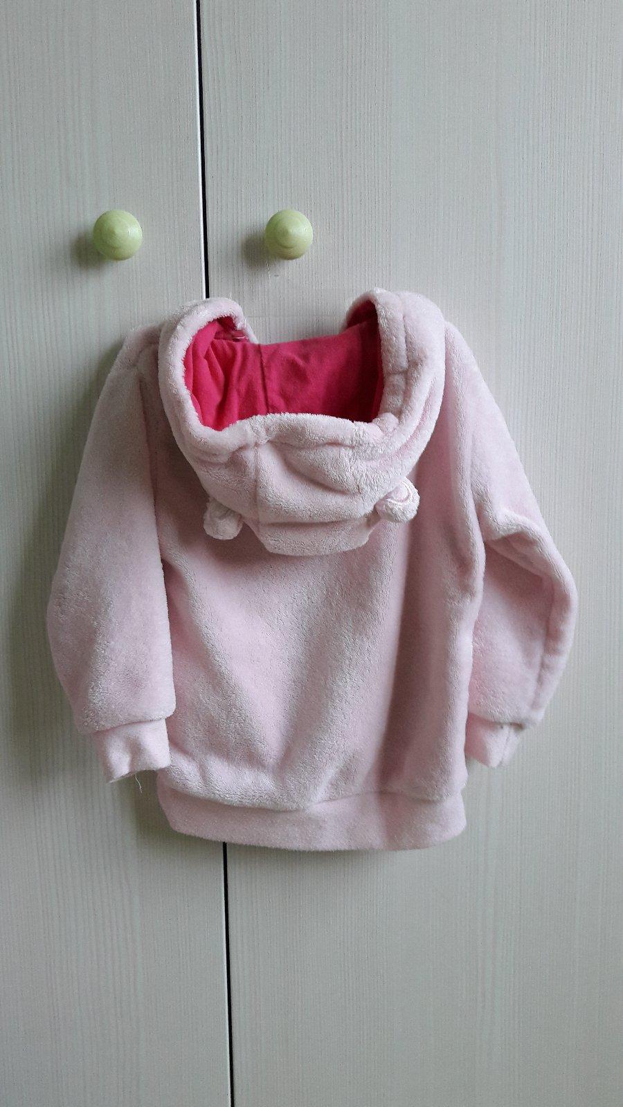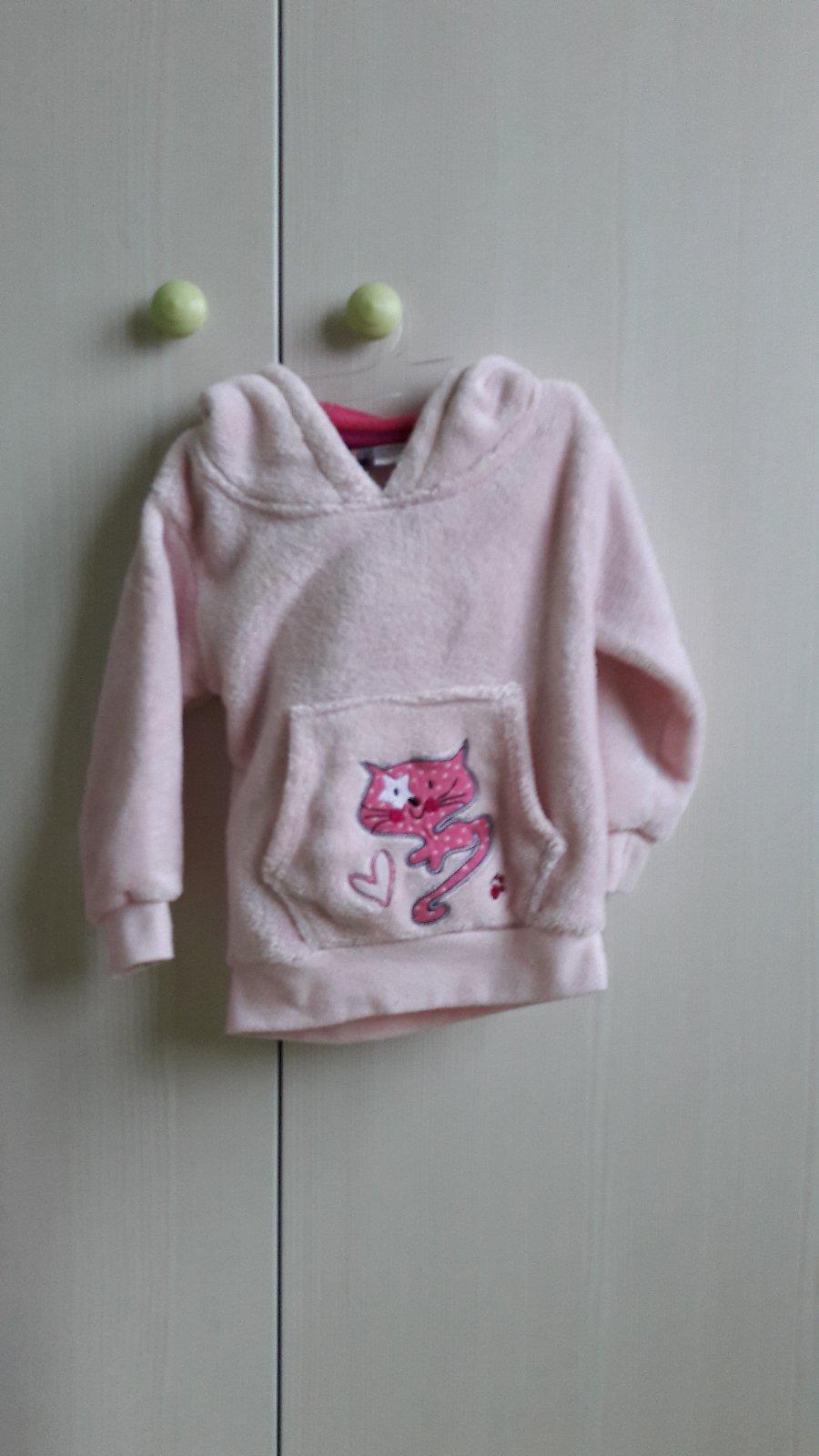 Tepla plysova mikinka, ma znamky nosenia- zmolky na rukavoch a na dolnom patente, ake bez inych poskodeni, stale pekna a nositelna.