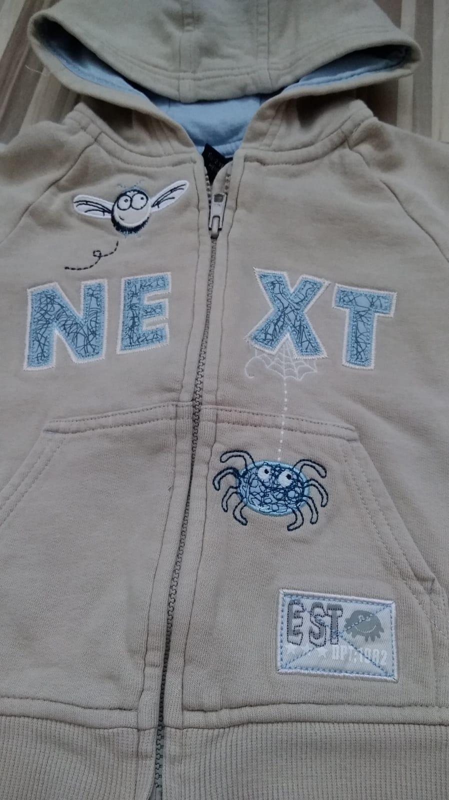 Bavlnena mikina s pavukom znacka Next, velkost 92 (1/2-2). Pri zipse malilinky fliacik.
