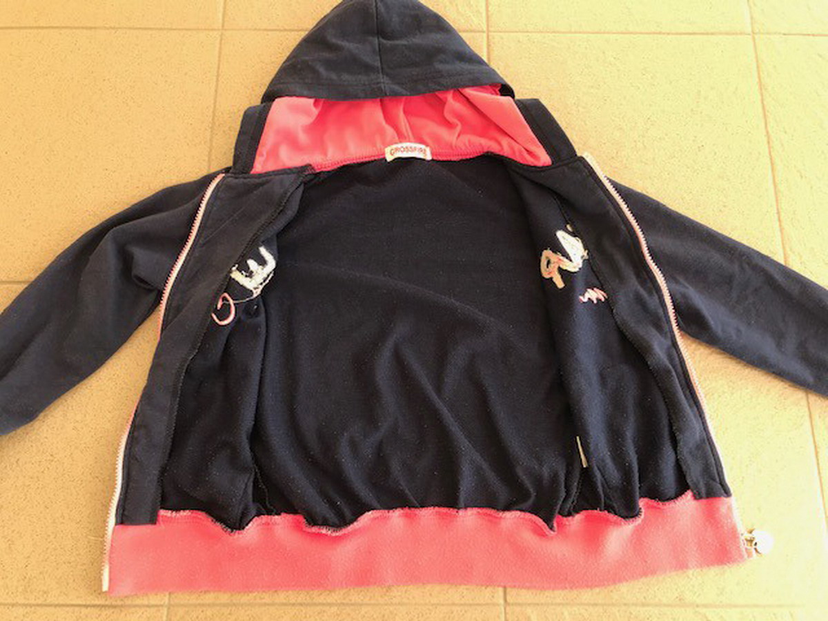 Rozmery: šírka medzi pazuchami - 37 cm, vnútorná dĺžka rukáva - 37 cm, vonkajšia dĺžka rukáva od ramena - 45 cm, celková dĺžka mikiny - 47 cm