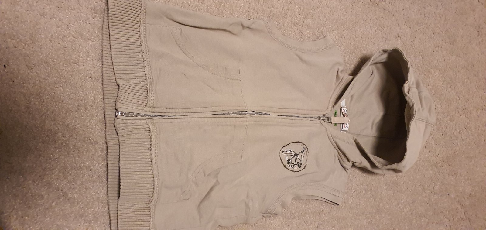 nosena, zachovala, 2 vacky vpredu. dlzka 43 cm, sirka 37 cm. material tenky ako teplakovina.