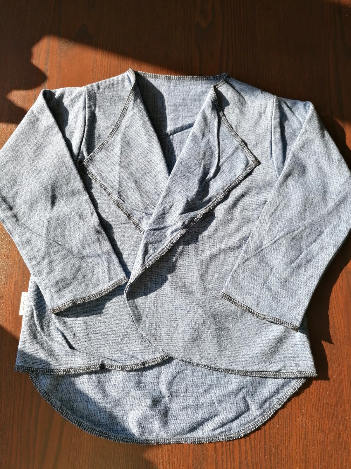 Ponúkam úžasné tenké sako hand made značky Ollo. U nás len oprane, dlho nám bolo veľké až sme z neho vyrástli a vôbec nevyužili. Treba sa riadiť rozmermi.Farba prskana modro-šedá. Až pri detailom prehliadnuti som objavila v zadnej časti dierku, šikovná mamina si isto poradi 😉