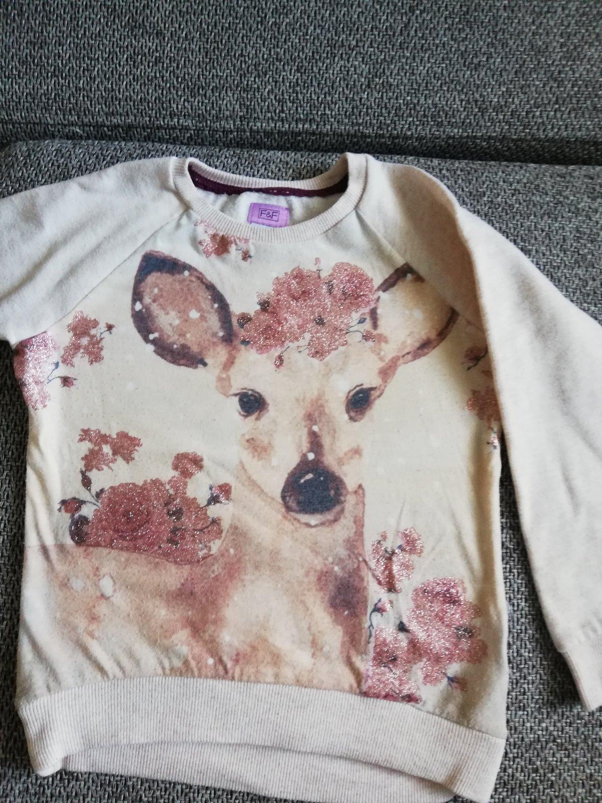 Pekný pulovrik so srnkou, ligotave prvky, tenký, skoro nový.