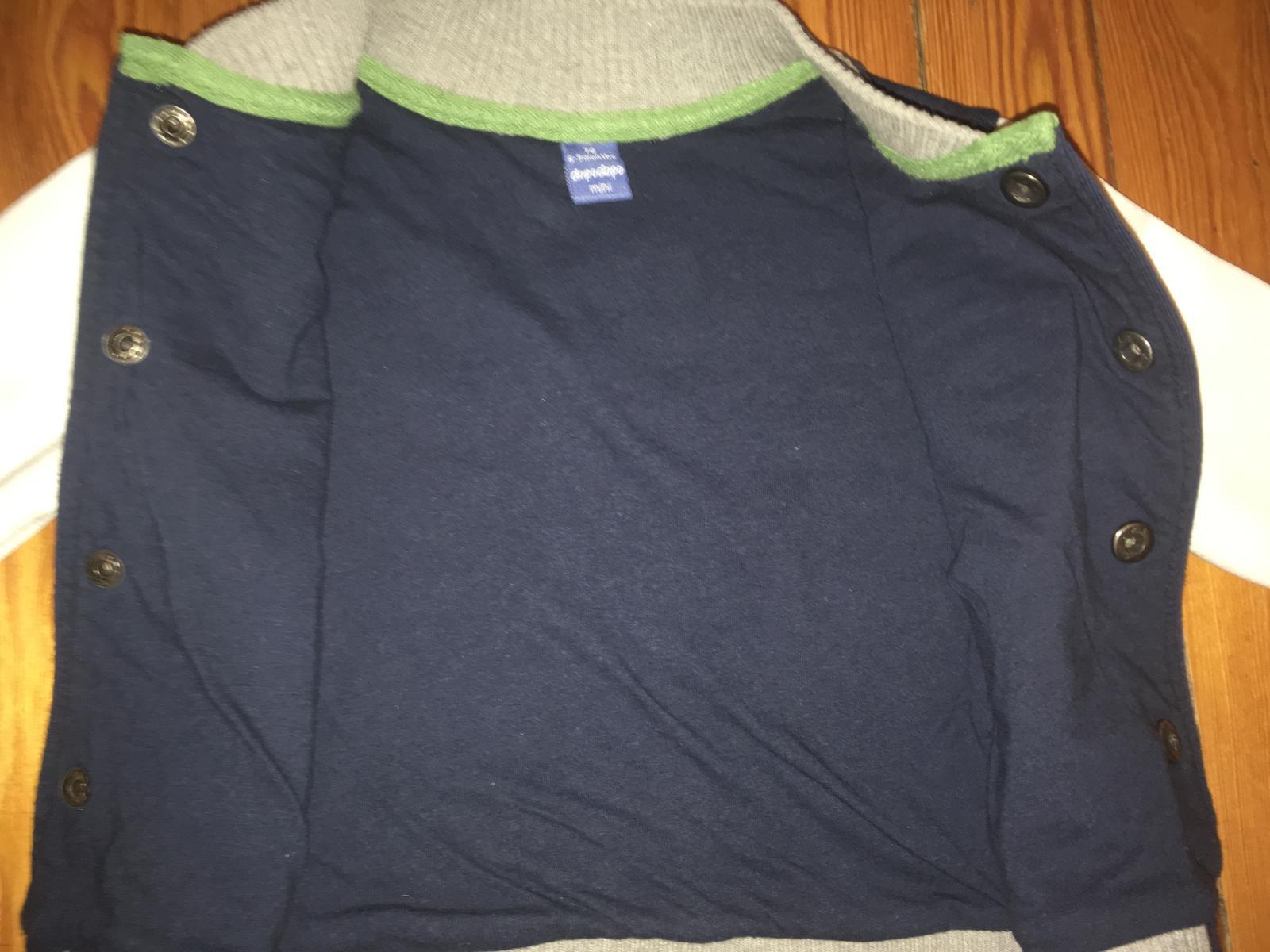 vesticka podsita bavlnenou latkou, zapinanie na cvoky, bez poskodeni (mali sme asi 2x oblecene, cize ako nova bez zmolkov), uvedene na 6-9mes., mozny osobny odber Mi a Ke, tricko vel. 6-9mes. gratis