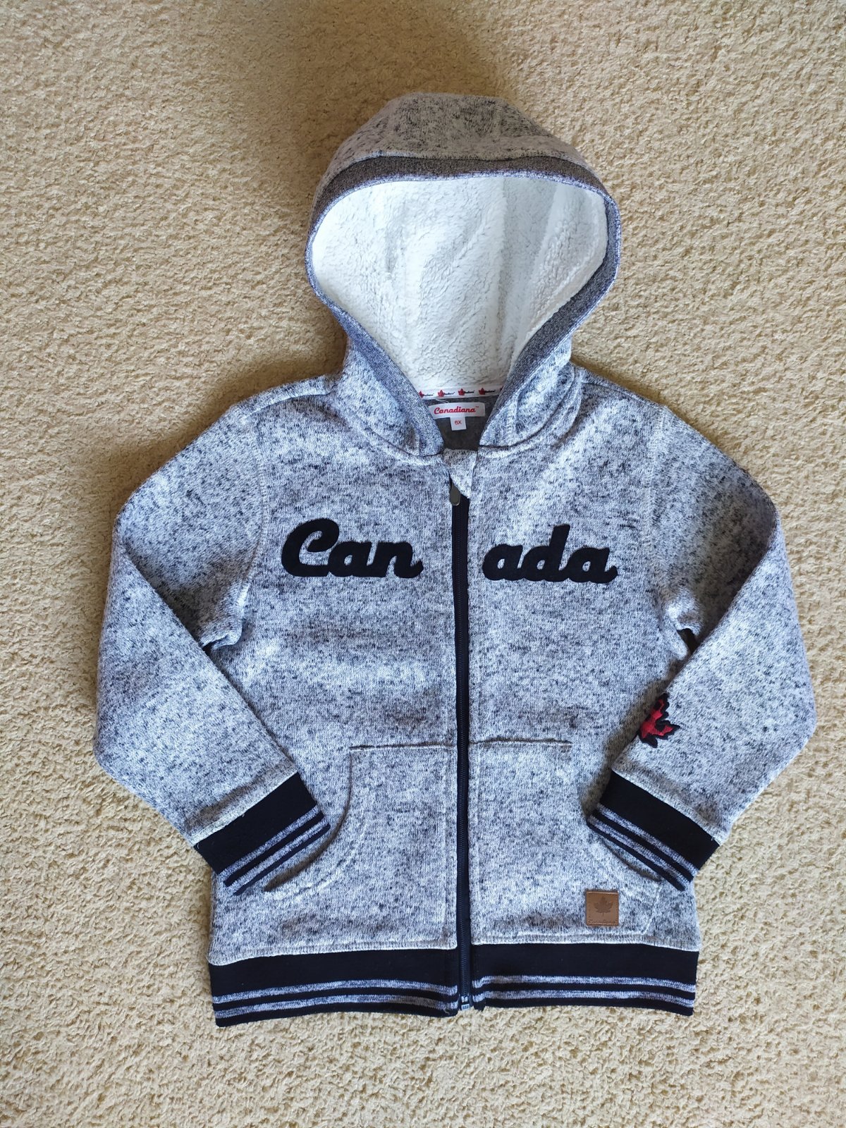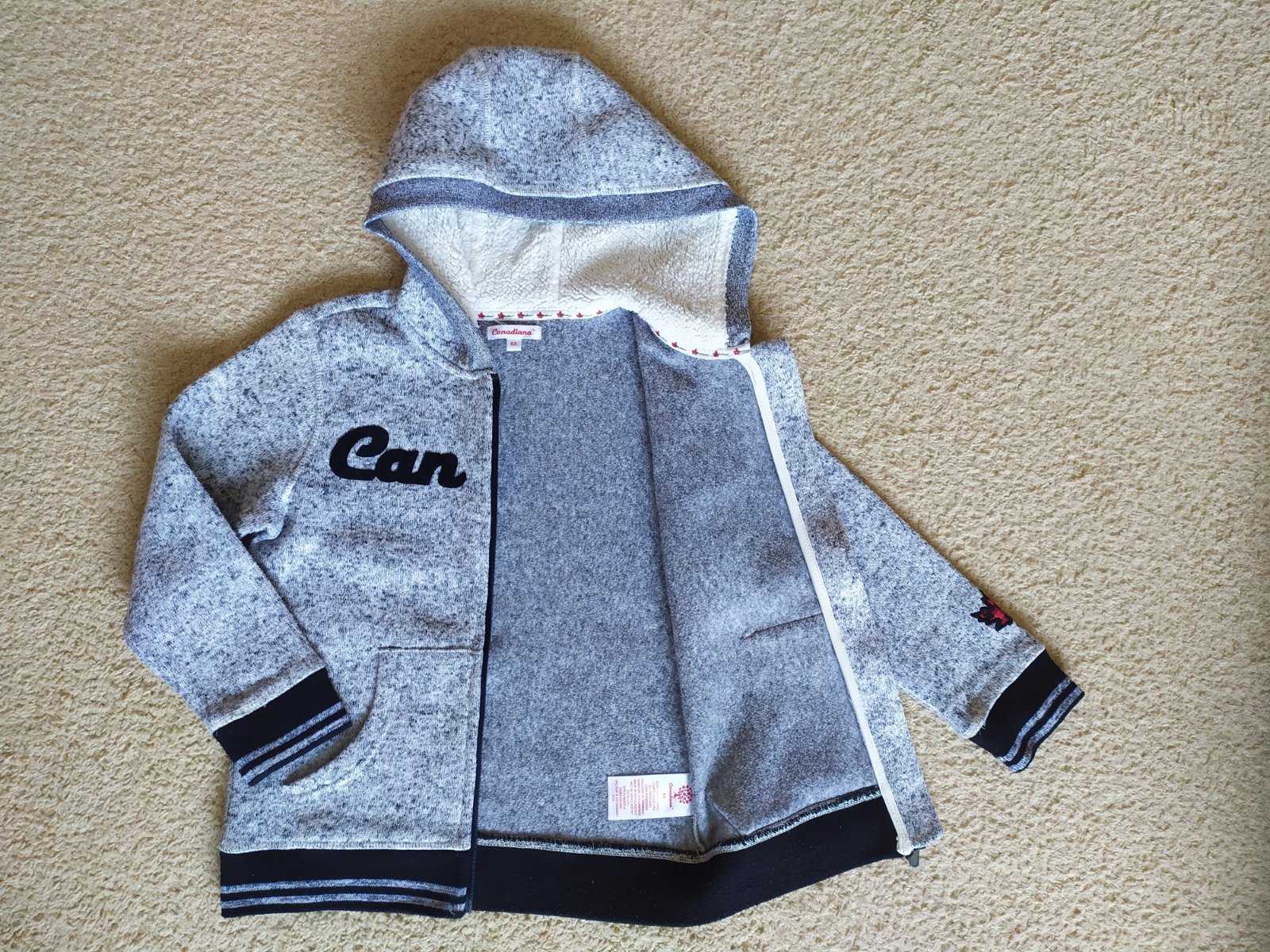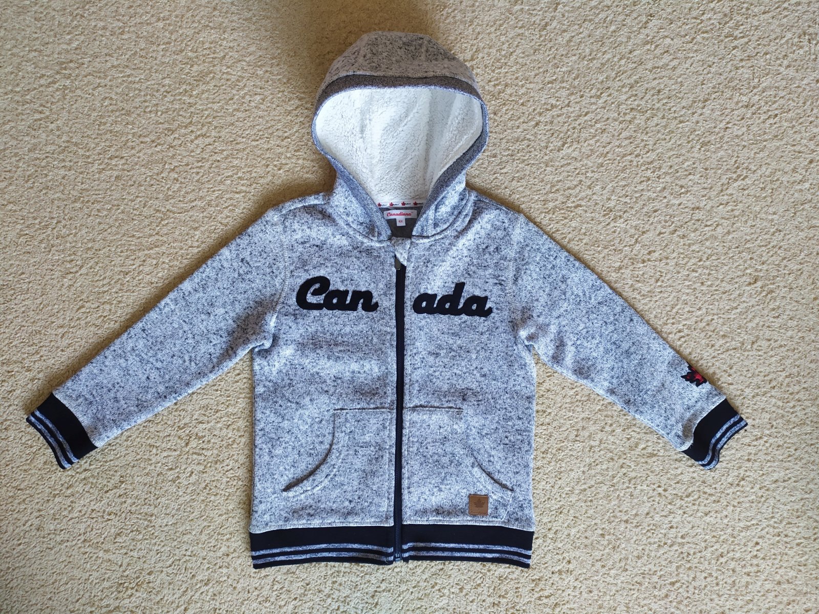 Ako nová. Teplejšia mikina. Kapucňa s umelou kožušinkou. Zapínanie na zips, 2 vrecká.
