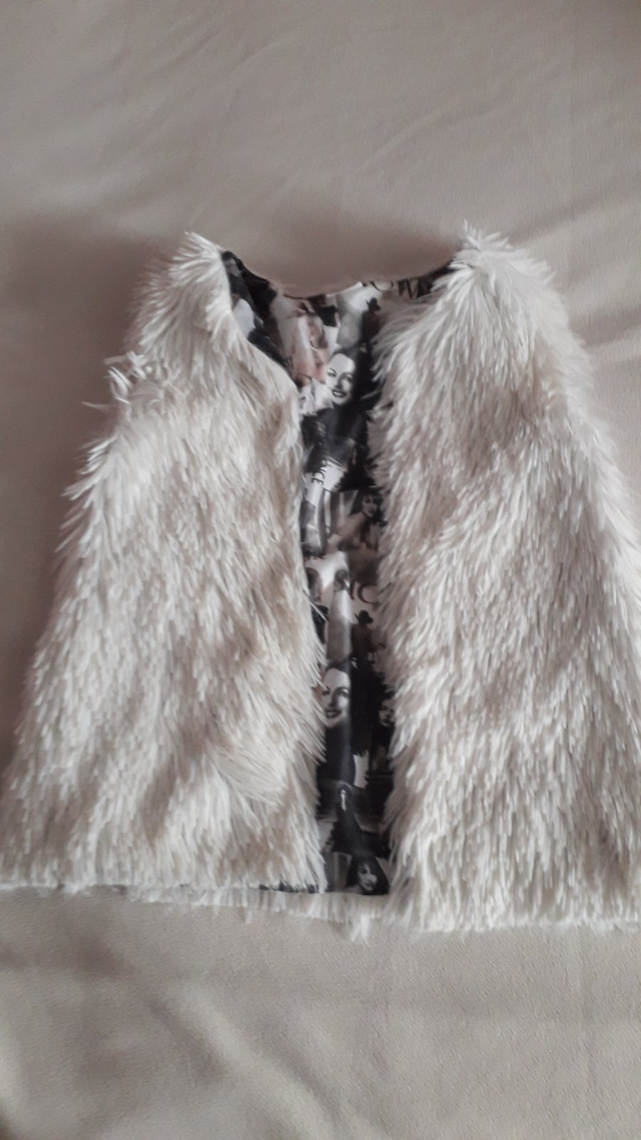 Krásna biela chlpatá vesta dá sa nosiť skôr rada zmeriam